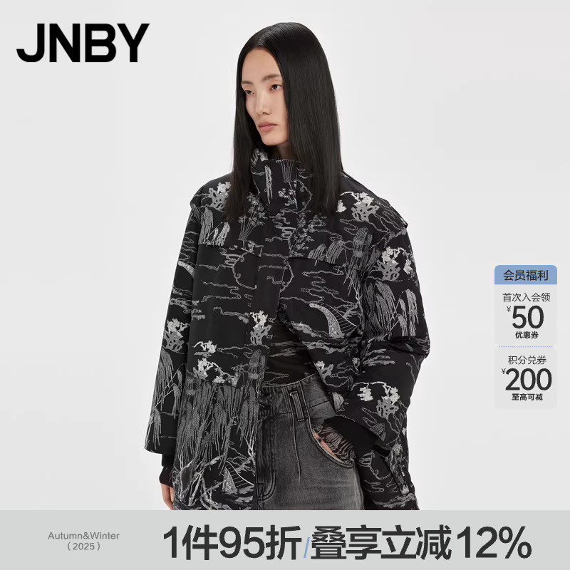 JNBY/江南布衣秋冬羽绒服女山水刺绣宽松立领复古长袖5M9C10920