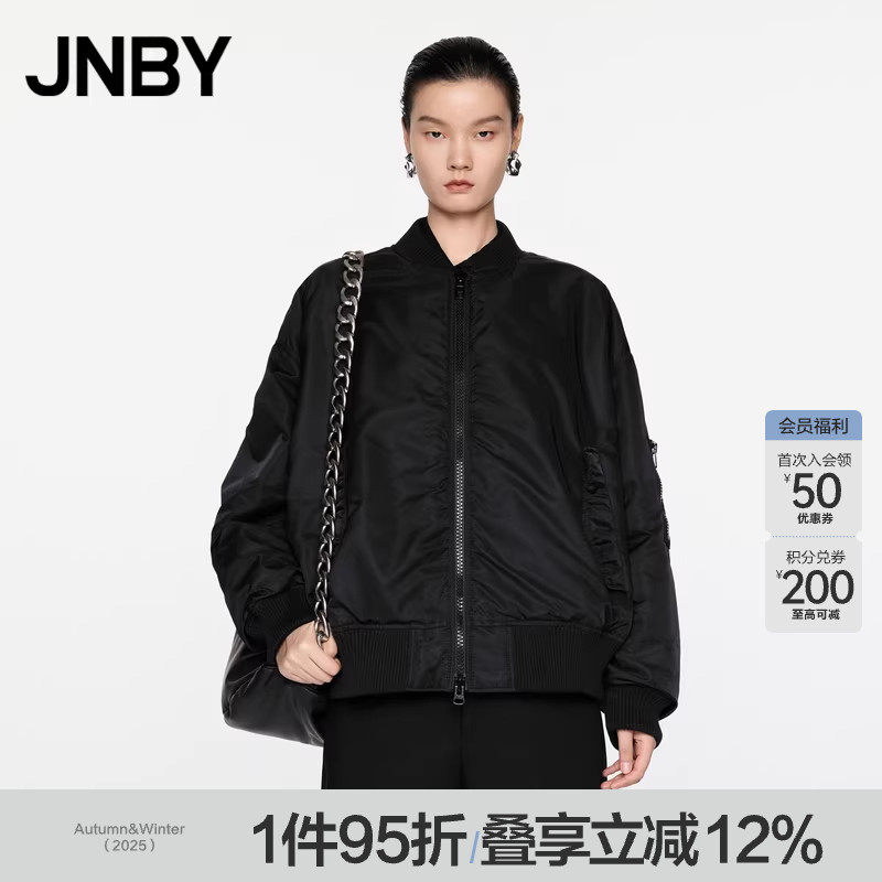 【90白鸭绒】JNBY/江南布衣冬季中长款连帽羽绒服女飞行夹克外套