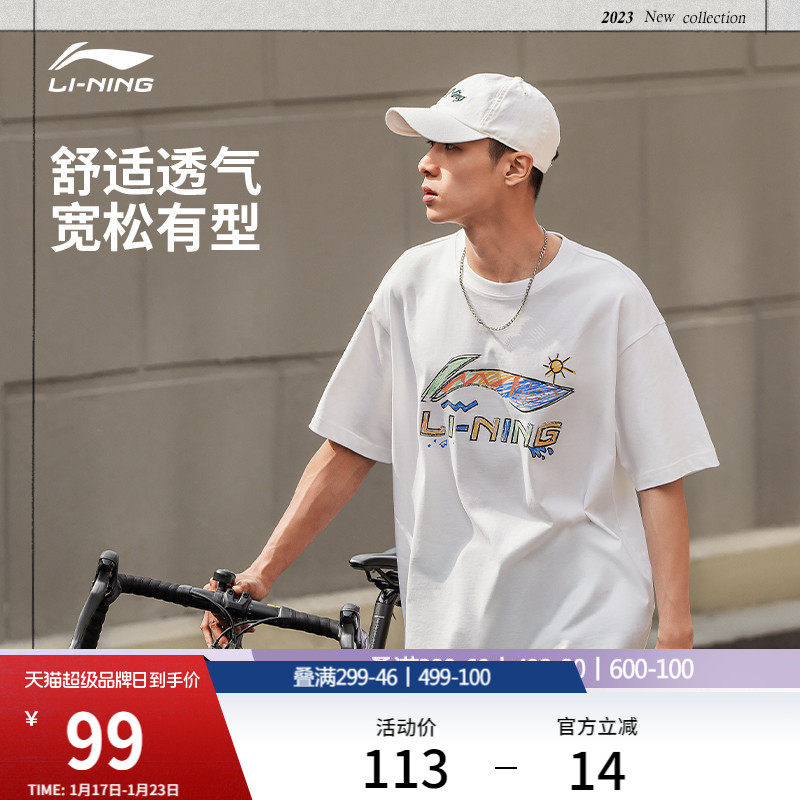李宁短袖男士夏季官方半袖情侣装运动上衣男装体恤宽松白色T恤女