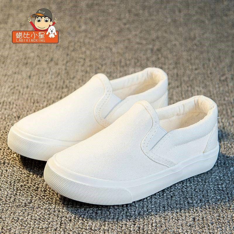 蜡比小星儿童一脚蹬懒人白u鞋男童白色板鞋女童白布鞋幼儿园小白