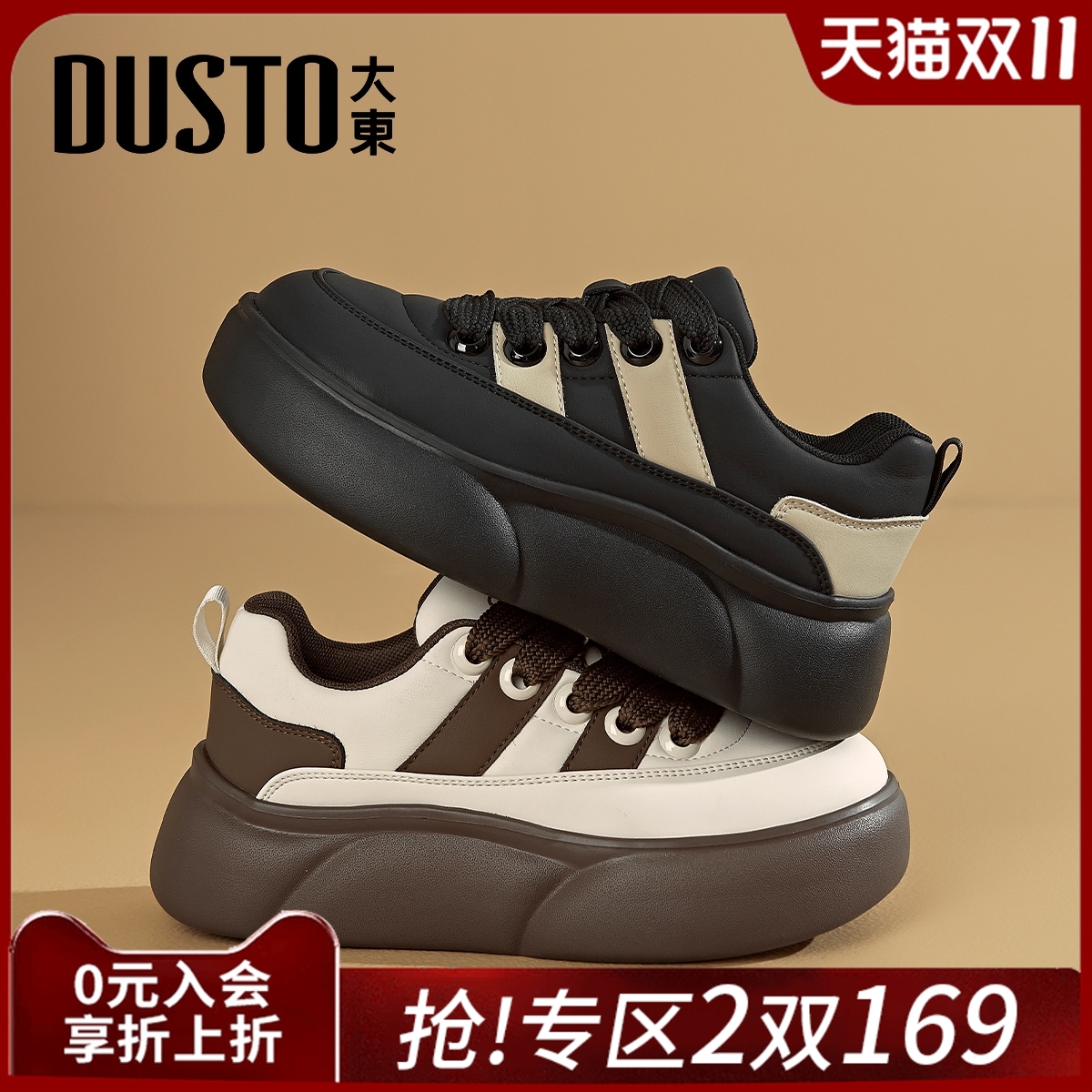 大东厚底板鞋女款2025新款鞋子女秋冬高级感小白鞋百搭松糕面包鞋