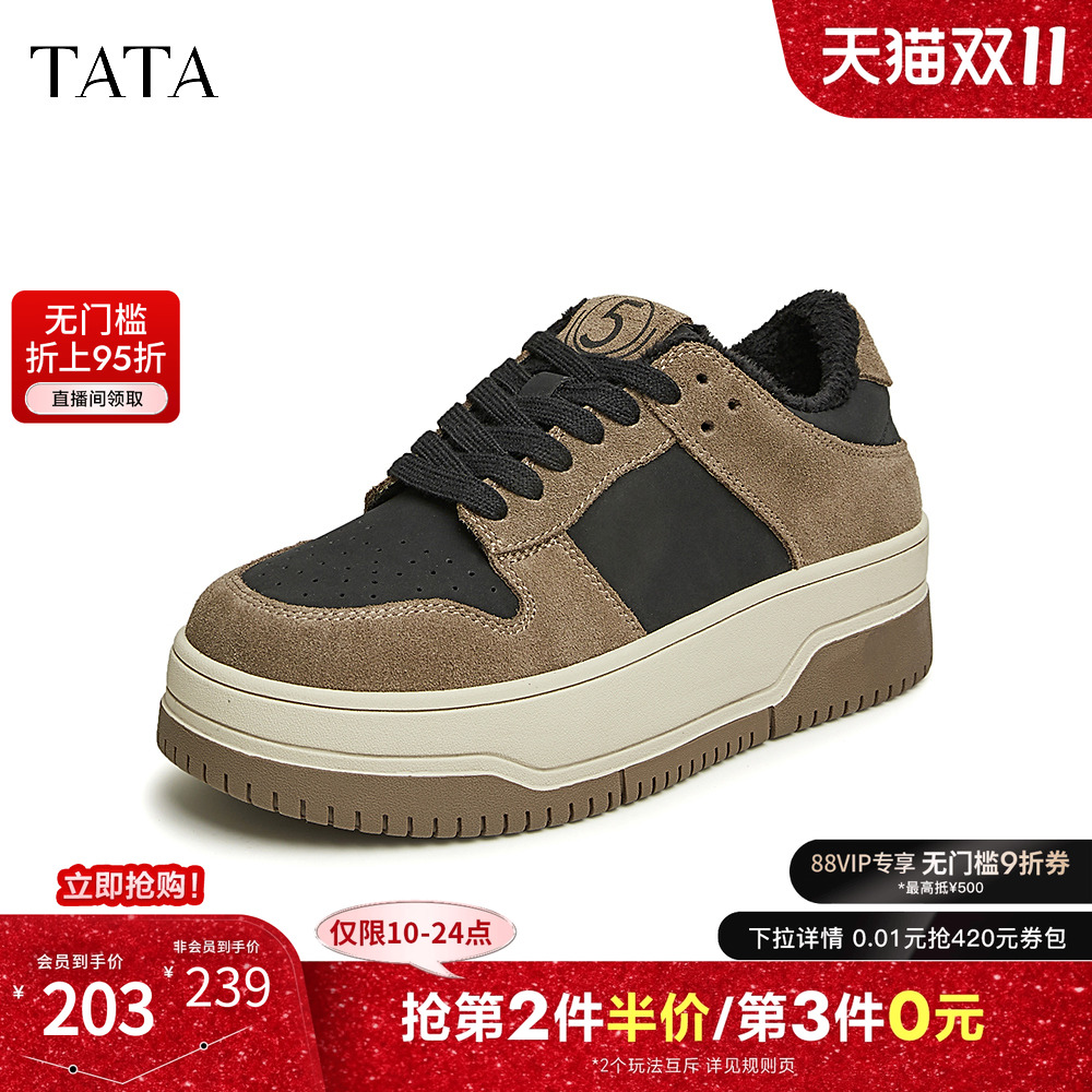 Tata他她休闲厚底板鞋女保暖松糕鞋加绒小白鞋冬季2024春WJ601AM4