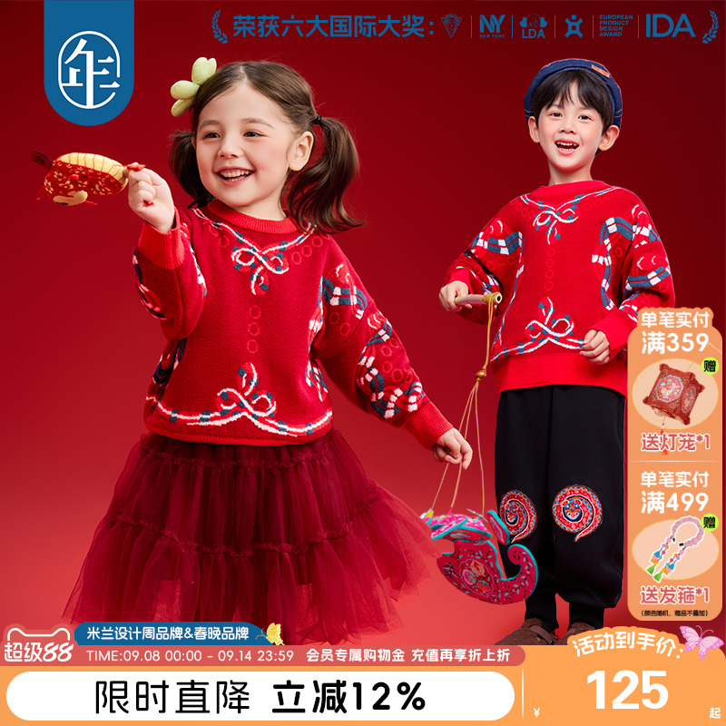 嘟嘟家儿童拜年服冬季男童中国风毛衣女童红色喜庆过年服宝宝唐装