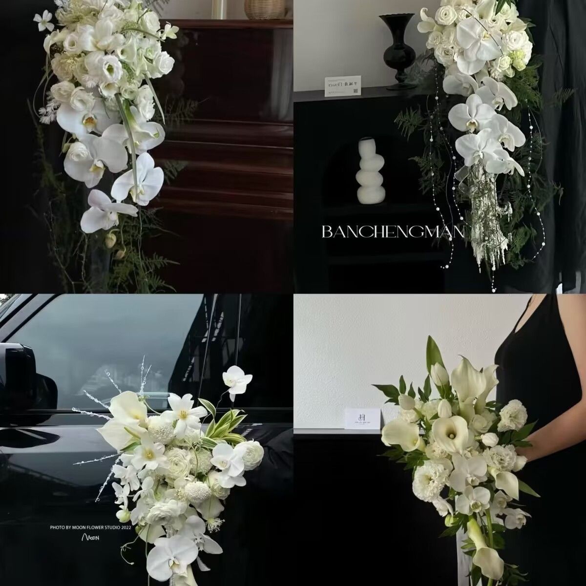 水滴瀑布手捧花白色蝴蝶兰马蹄莲花束新娘结婚仿真花婚礼婚纱摄影