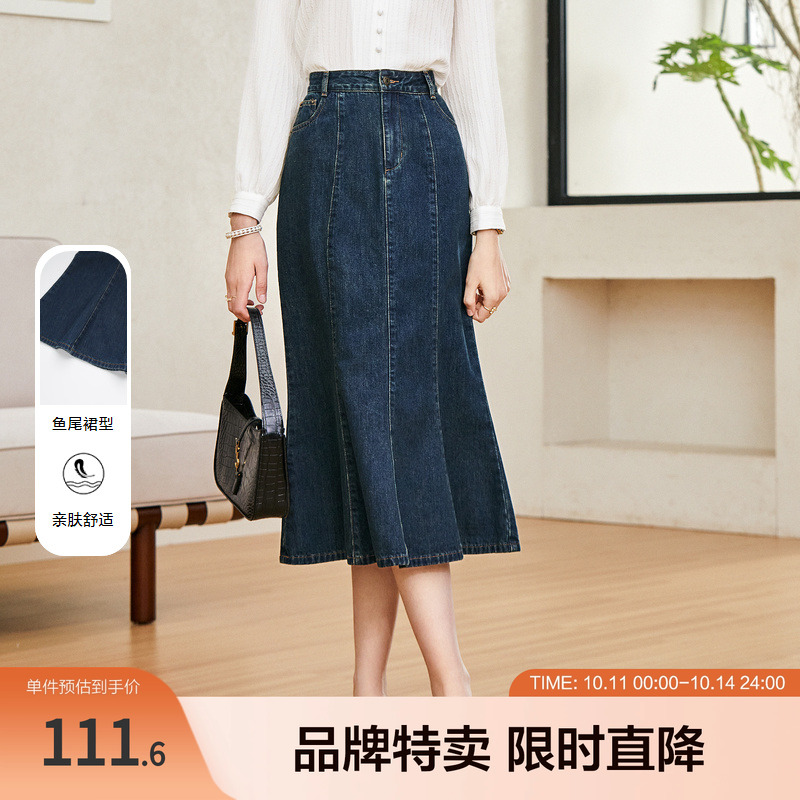 播牛仔半身裙女商场同款春季新款中长款温柔鱼尾裙BDQ4BD0904