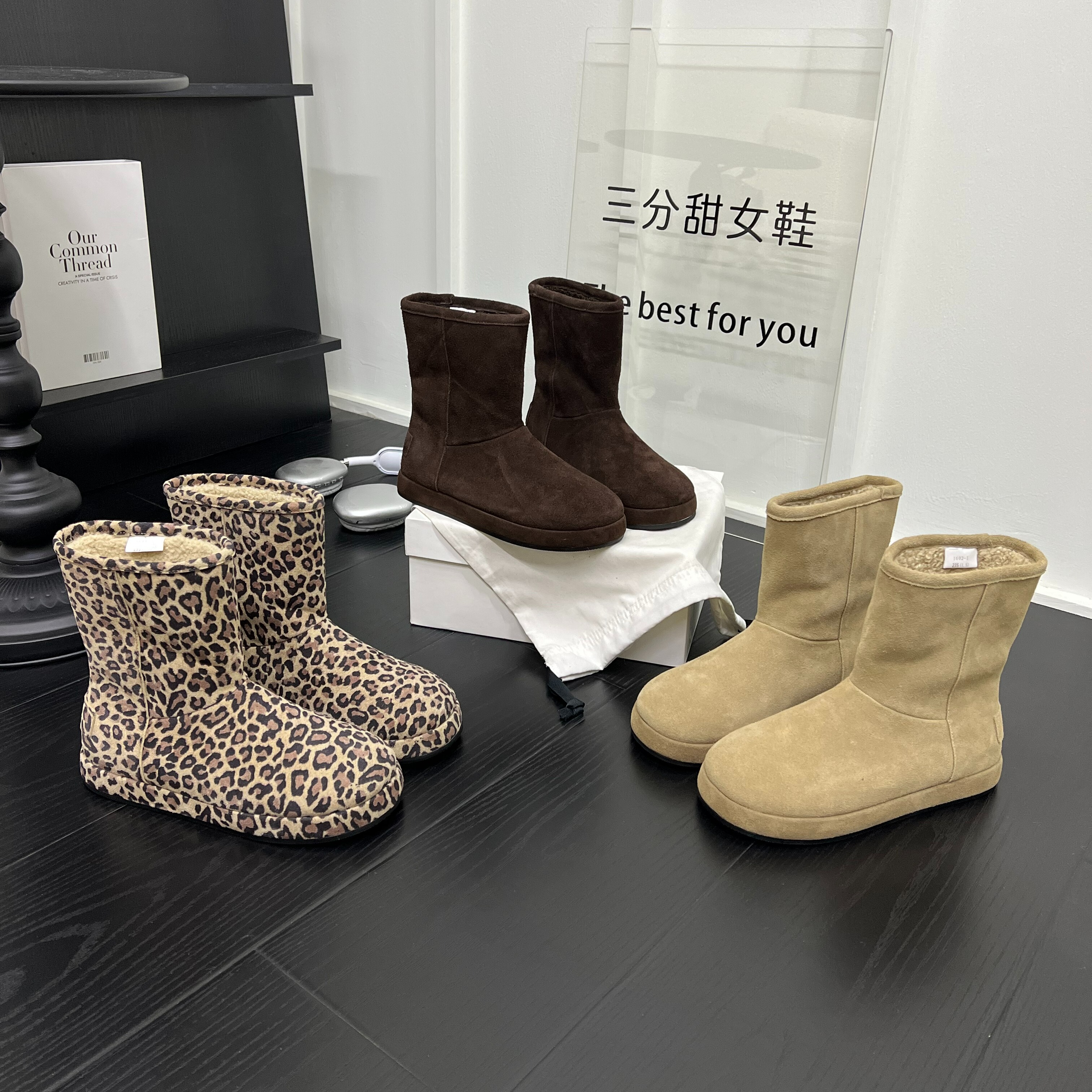 明星同款磨砂皮豹纹平底马丁靴女2025年新款英伦风短靴烟筒靴棉靴