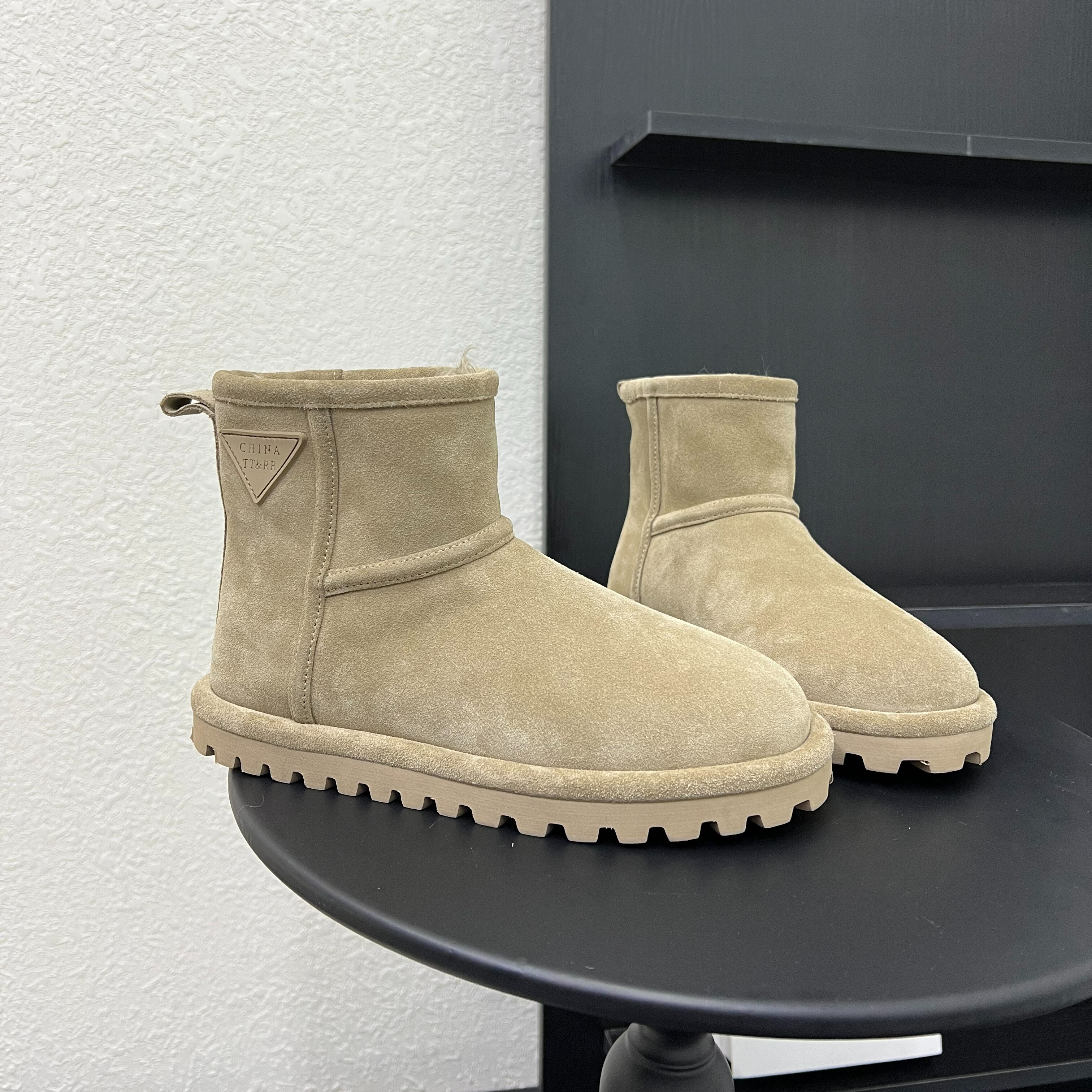 磨砂真皮羊毛两穿中筒雪地靴女加绒厚底勃肯棉靴圆头平底马丁靴擦