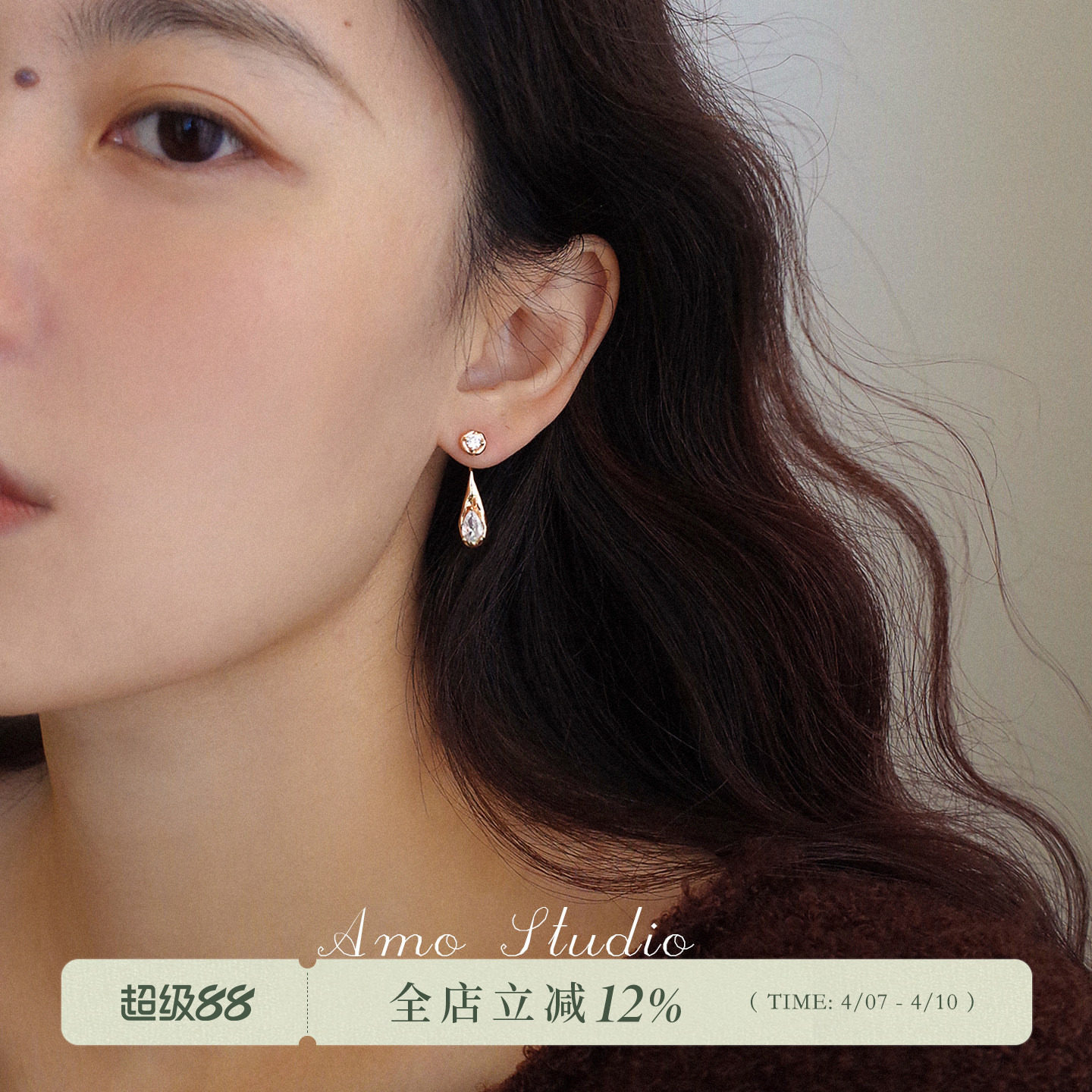 AMO罗马假日 闪钻长水滴耳钉轻奢气质高级感耳环显脸小精致耳饰
