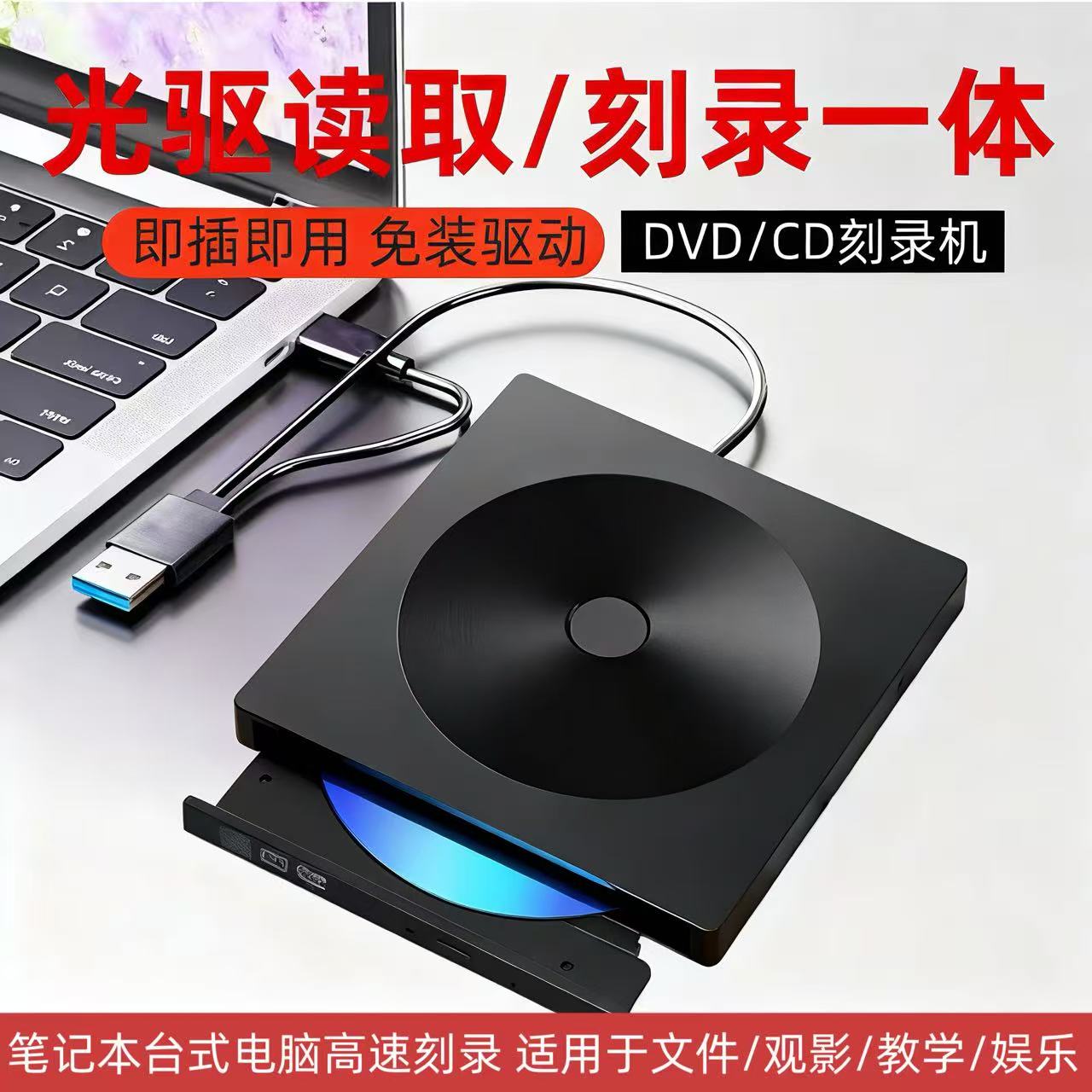 USB外置光驱DVD/CD刻录机移动光驱免驱动双接口笔记本台式机通用