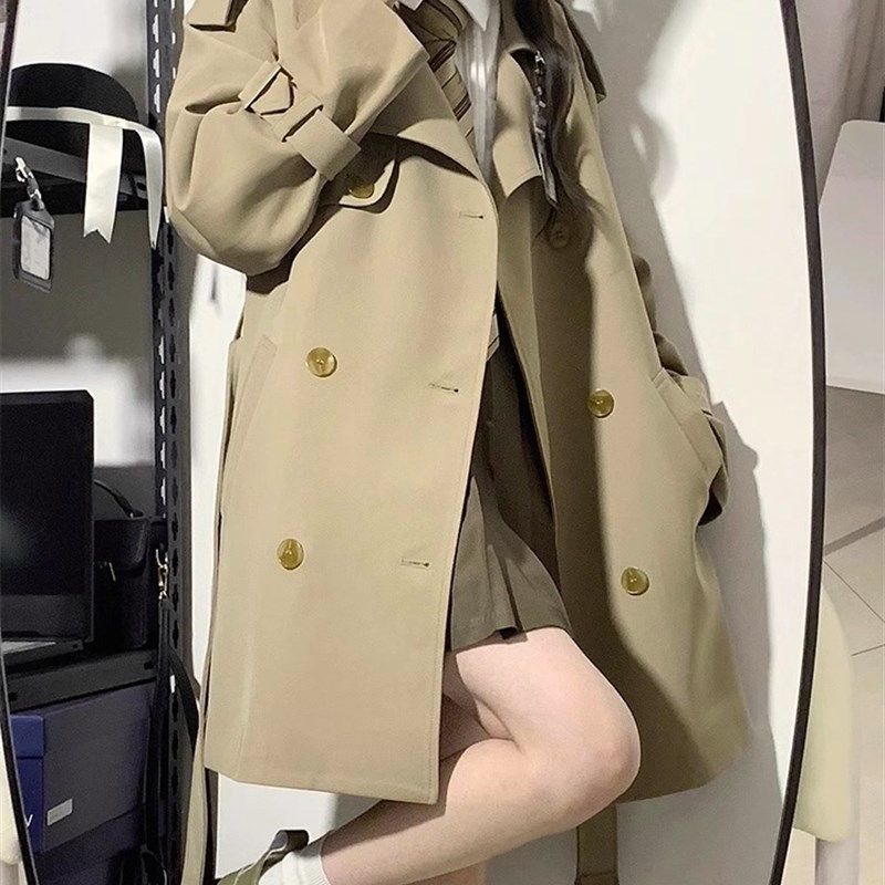 - 双排扣短款风衣外套女