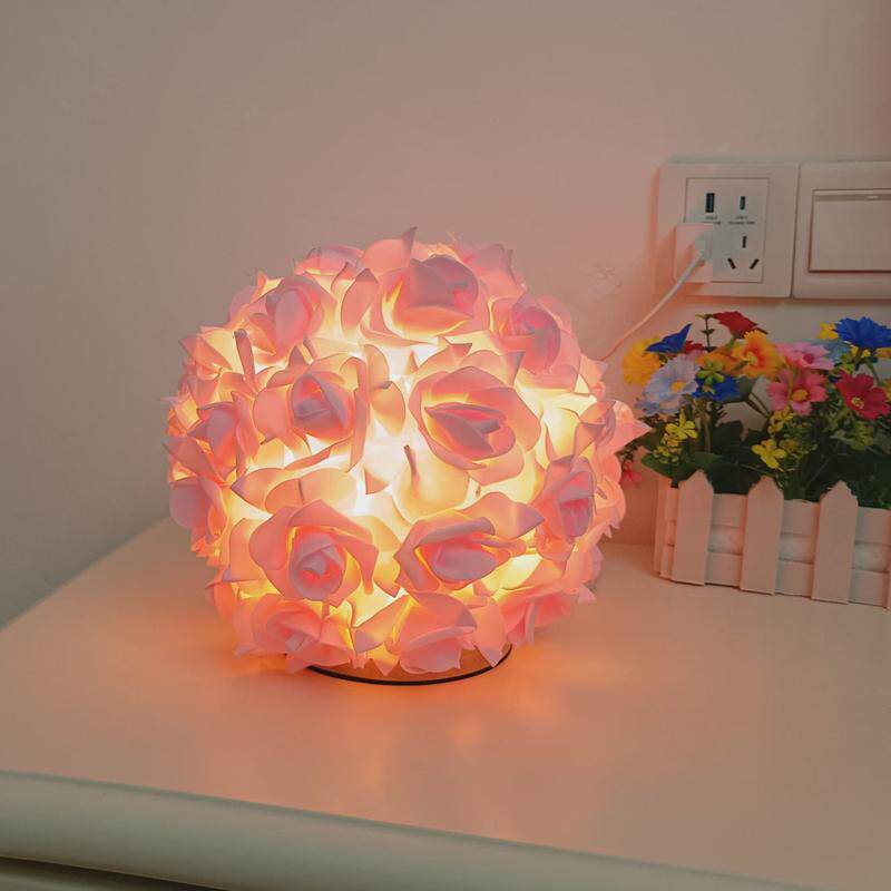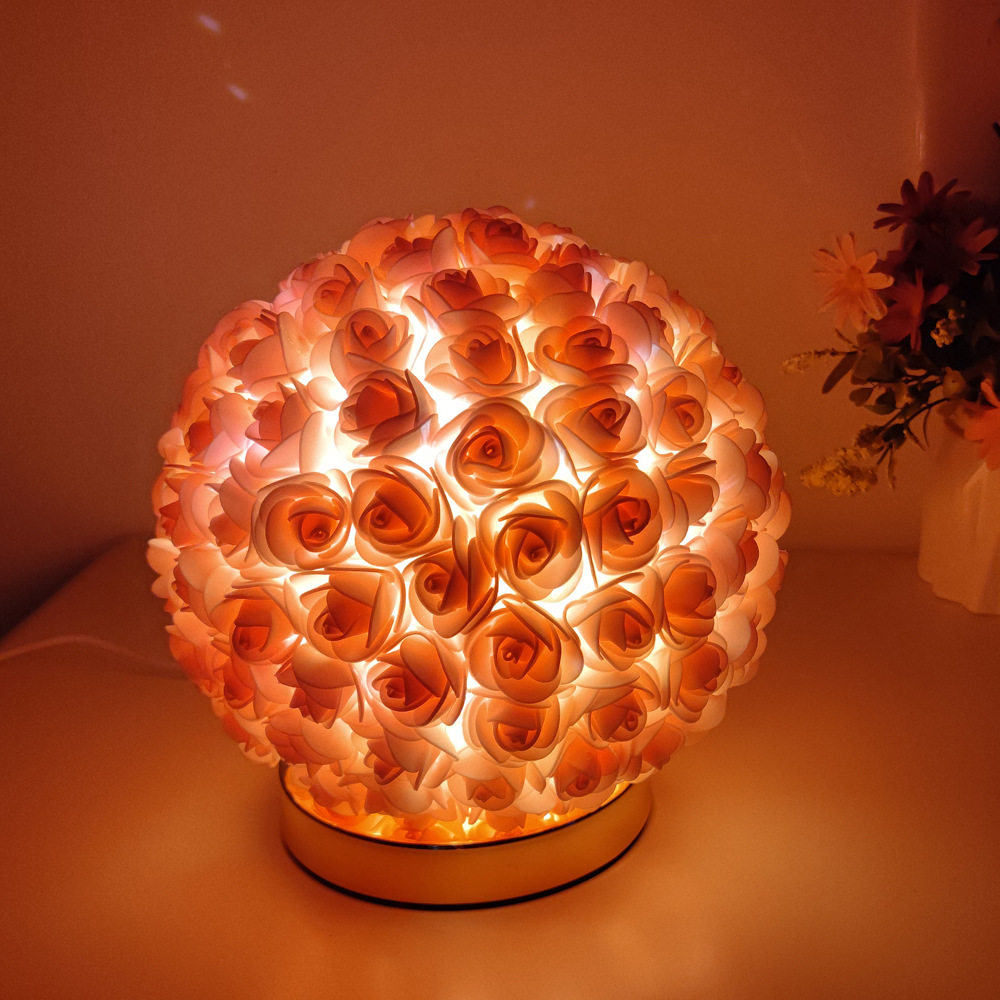 创意圆球玫瑰花台灯 永生花婚庆结婚闺蜜礼物卧室床头灯玫瑰花灯