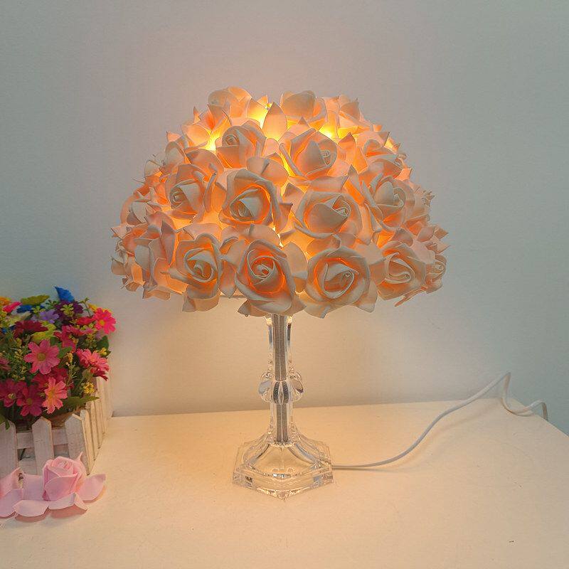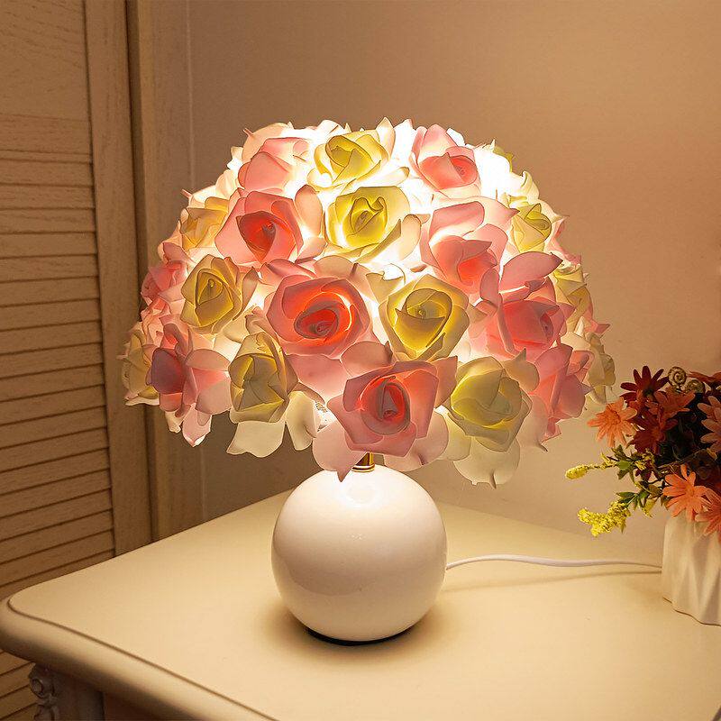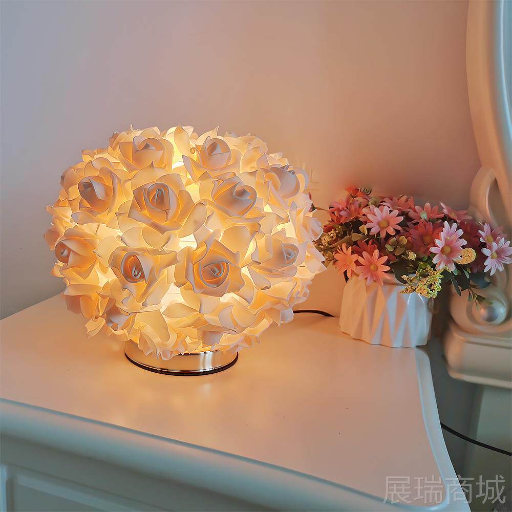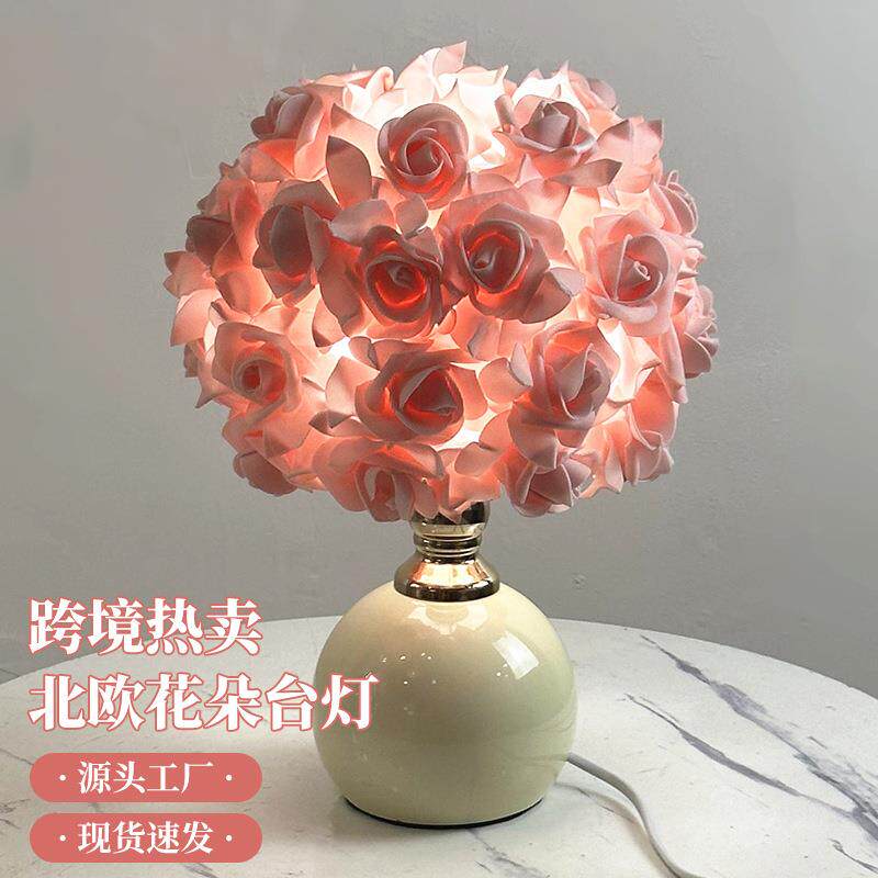 跨境简约玫瑰花台灯粉色白色简约卧室浪漫气氛床头灯少女装饰台灯