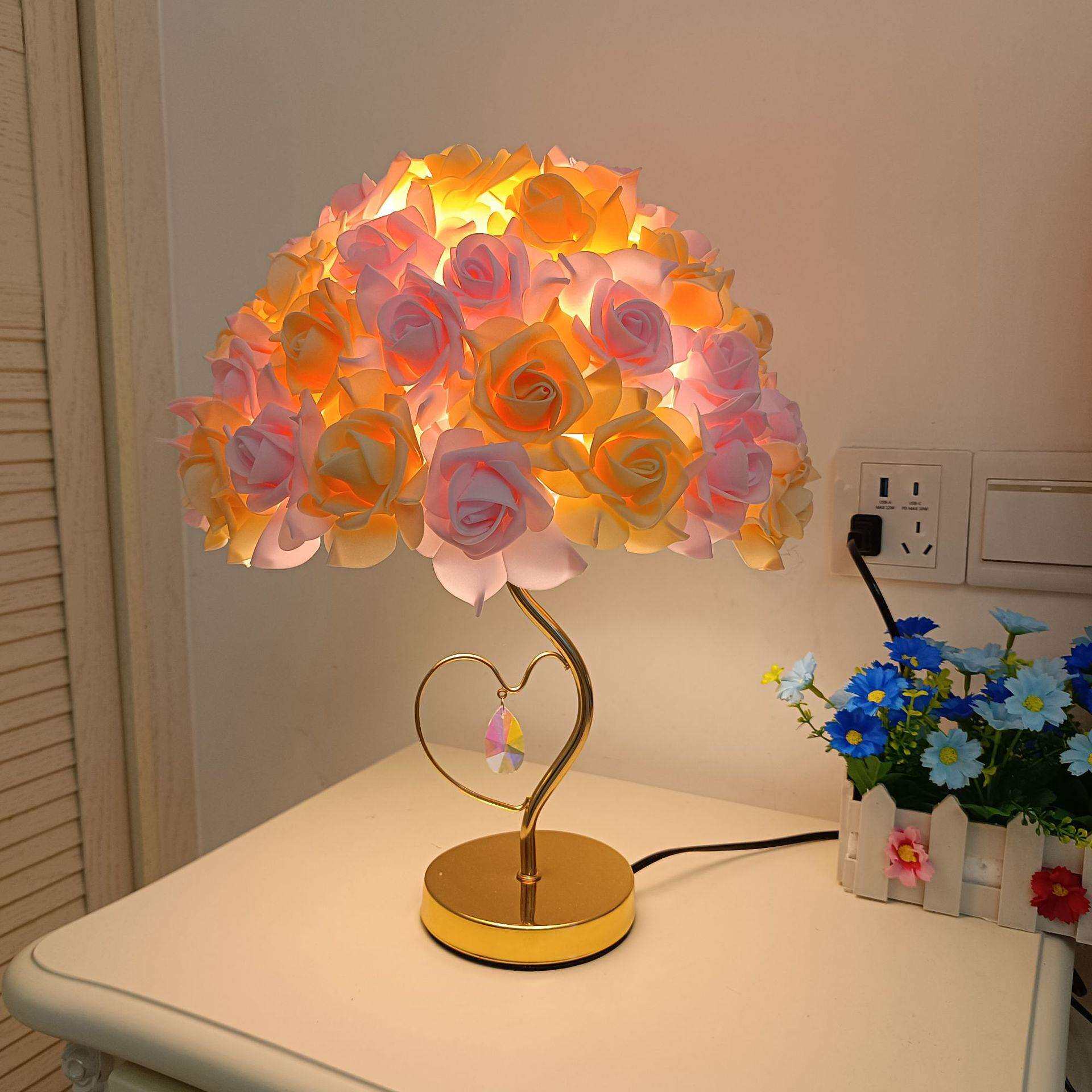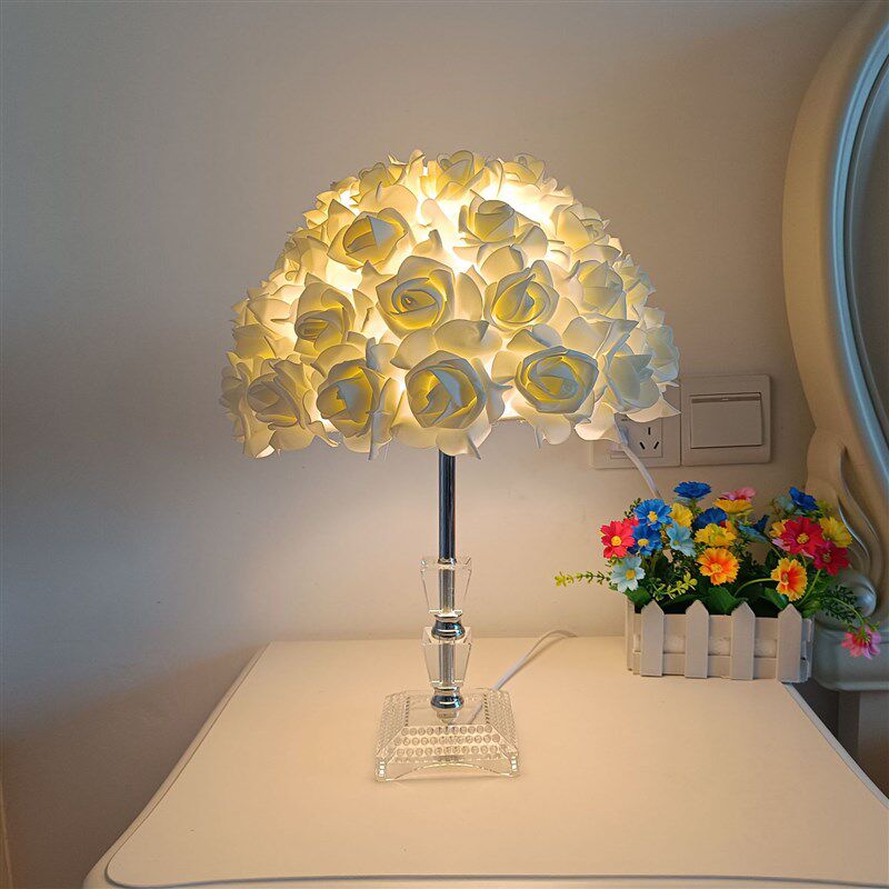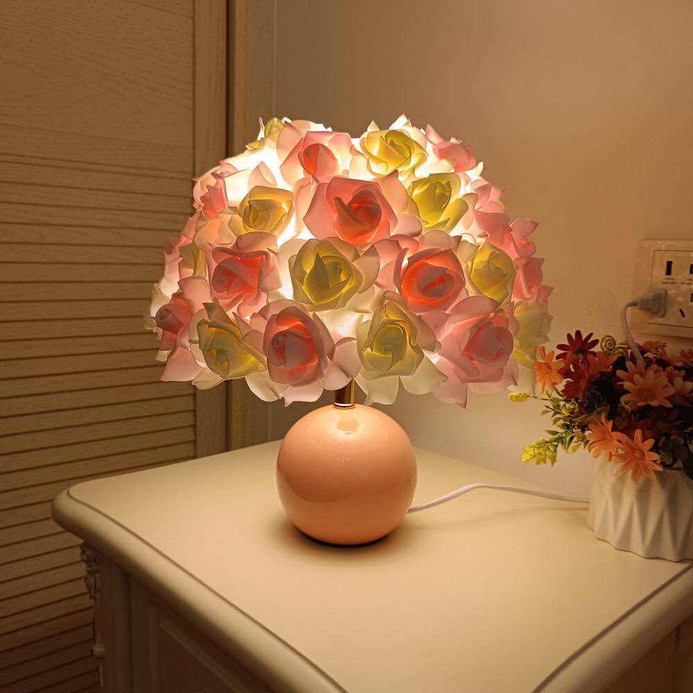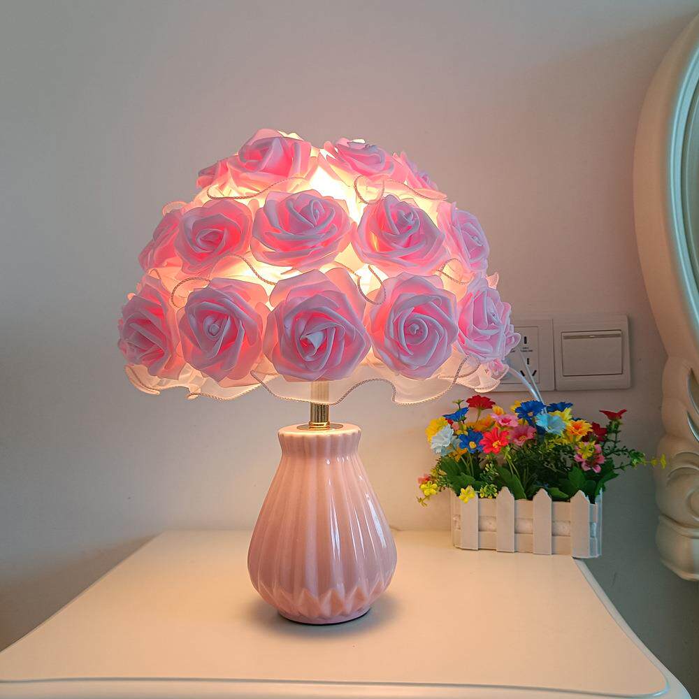 跨境简约玫瑰花台灯粉色白色简约卧室浪漫气氛床头灯少女装饰台灯