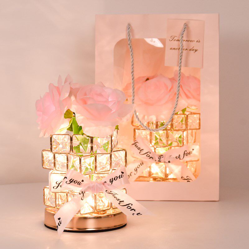 水晶玫瑰花氛围台灯卧室床头灯LED小夜灯浪漫ins风网红情调灯礼物
