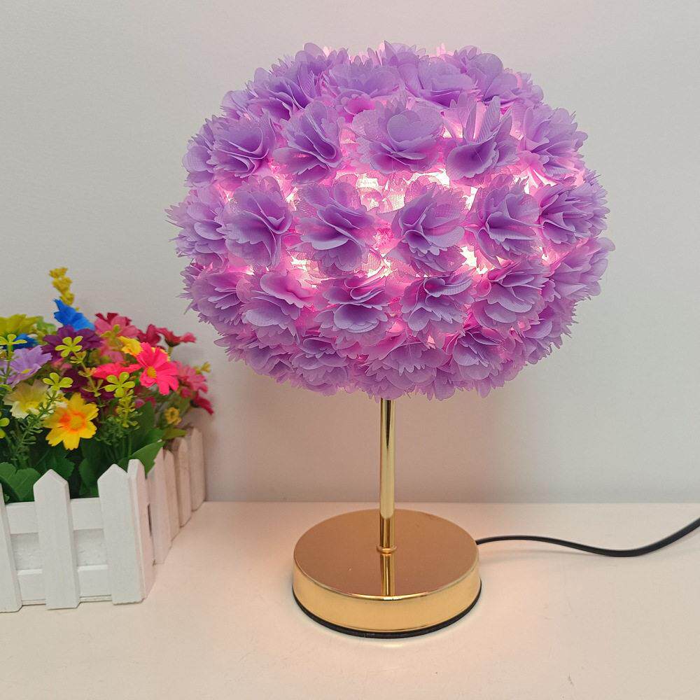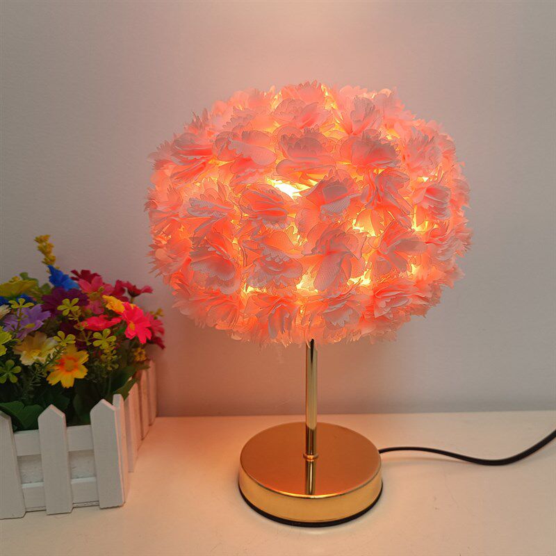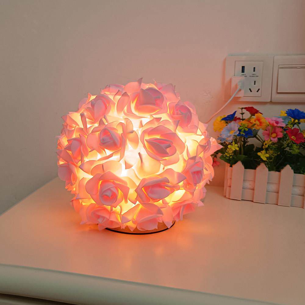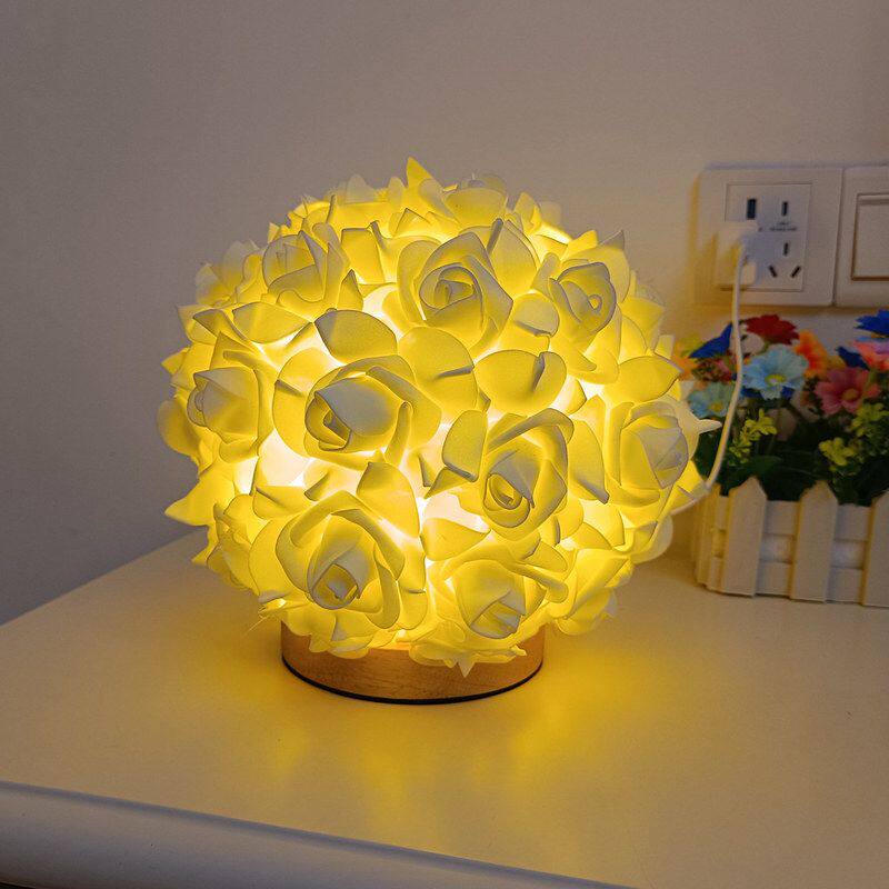 跨境圆球卧室床头灯台灯装饰花灯浪漫婚庆北欧麻球温馨玫瑰花台灯
