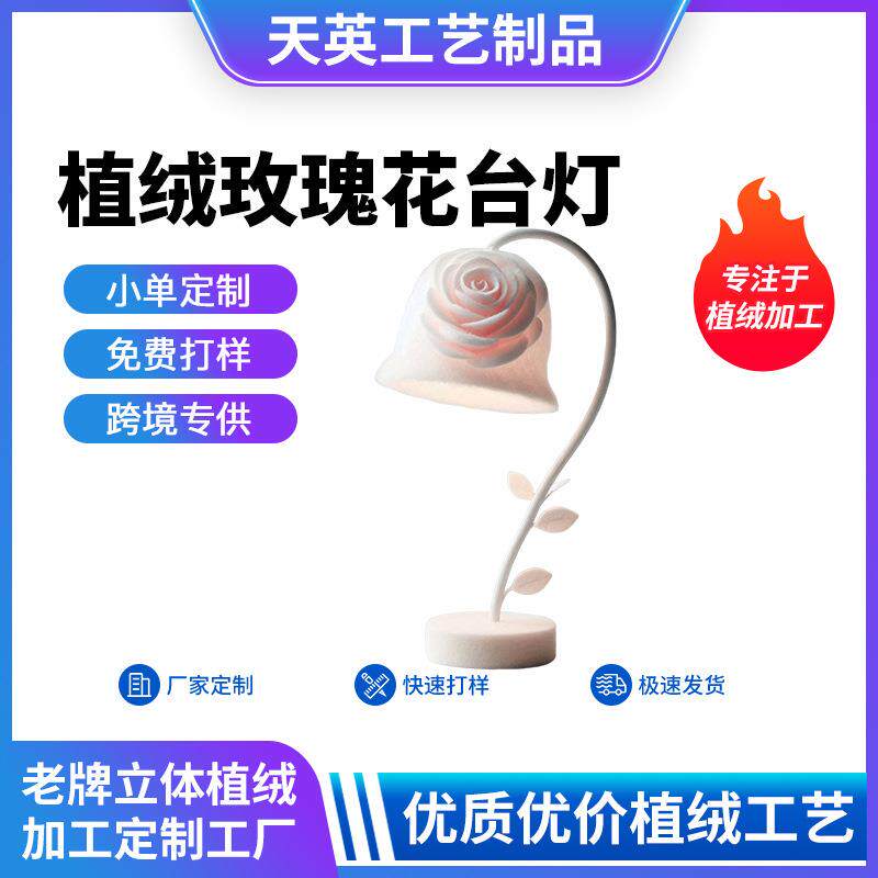 创意植绒玫瑰花台灯小夜灯 儿童房植绒玫瑰家居装饰摆件饰品桌摆