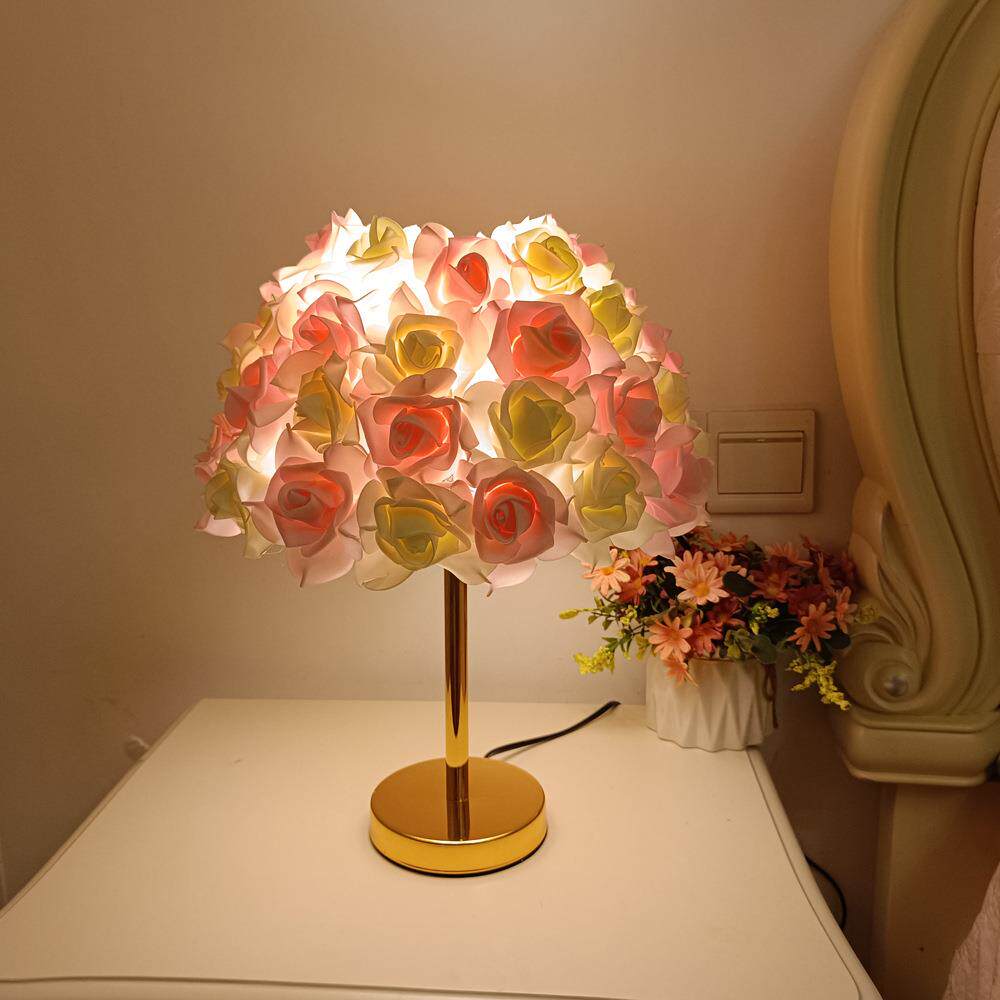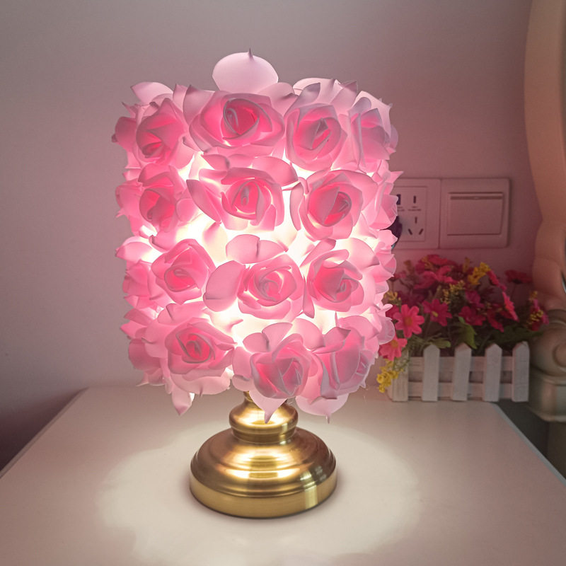 跨境金杆玫瑰花台灯婚庆田园浪漫氛围灯简约少女卧室摆件装饰台灯