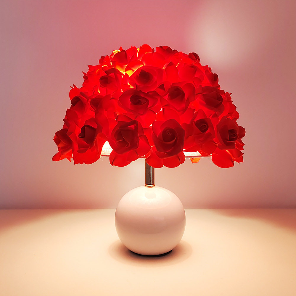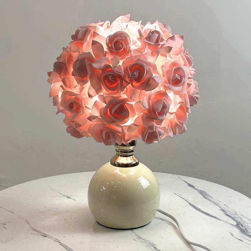 玫瑰花台灯送礼物伞形圆球装饰台灯卧室创意婚礼摆件床头陶瓷少女