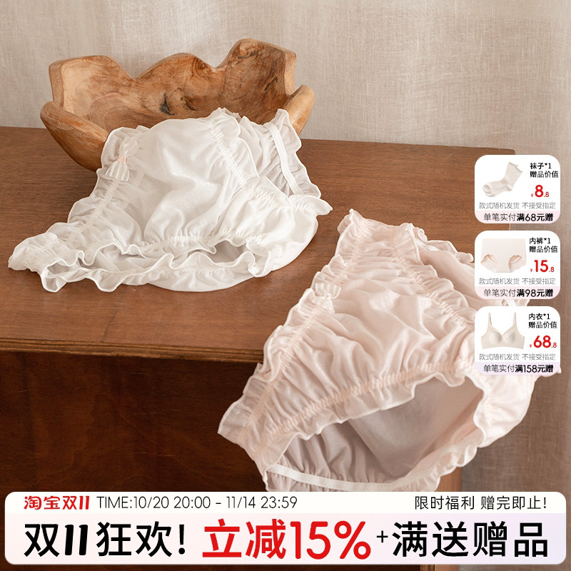 日系大码200斤女胖mm纯欲少女内裤女可爱皱褶荷叶边桑蚕丝抗菌裆