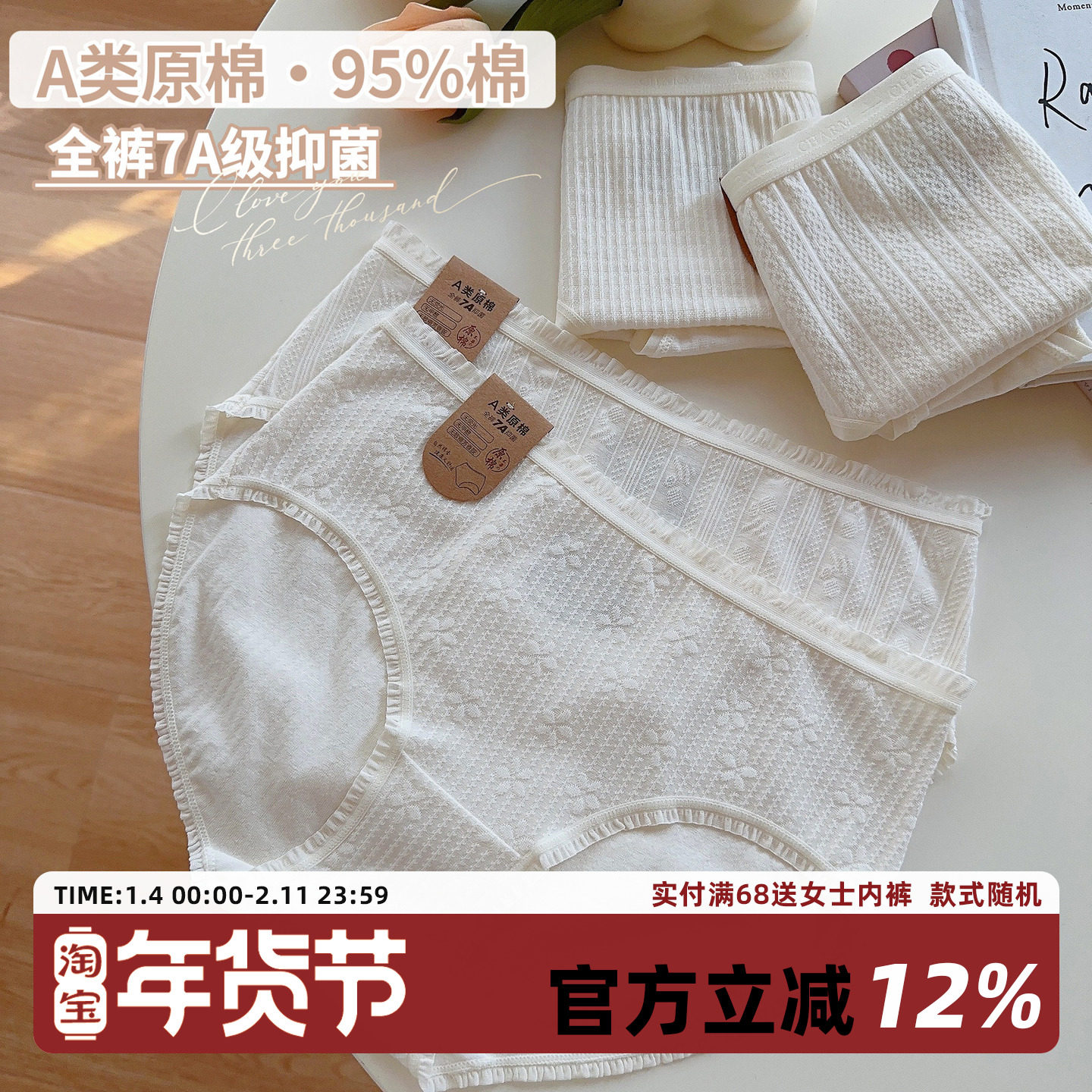 A类5条白色纯棉内裤女可爱少女生日系抗菌秋冬新款中腰女士三角裤
