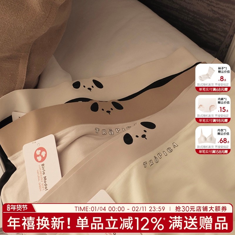 3件|蕉内银皮301Color可爱印花女内裤莫代尔少女纯棉透气裆三角裤