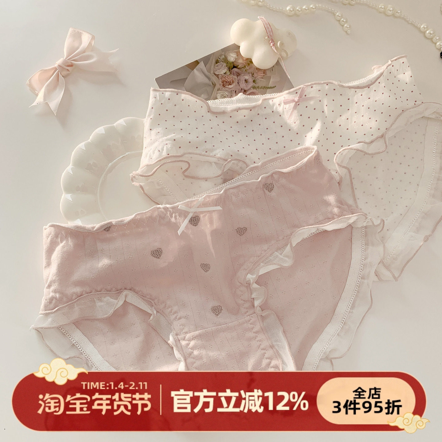 新款中腰甜欲粉色洛丽塔系内裤女可爱甜美少女三角裤纯棉女士内裤
