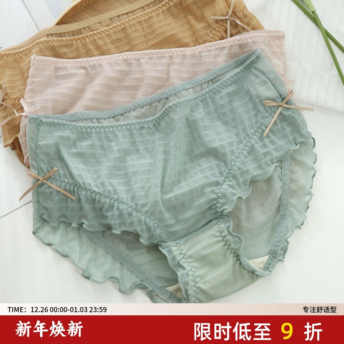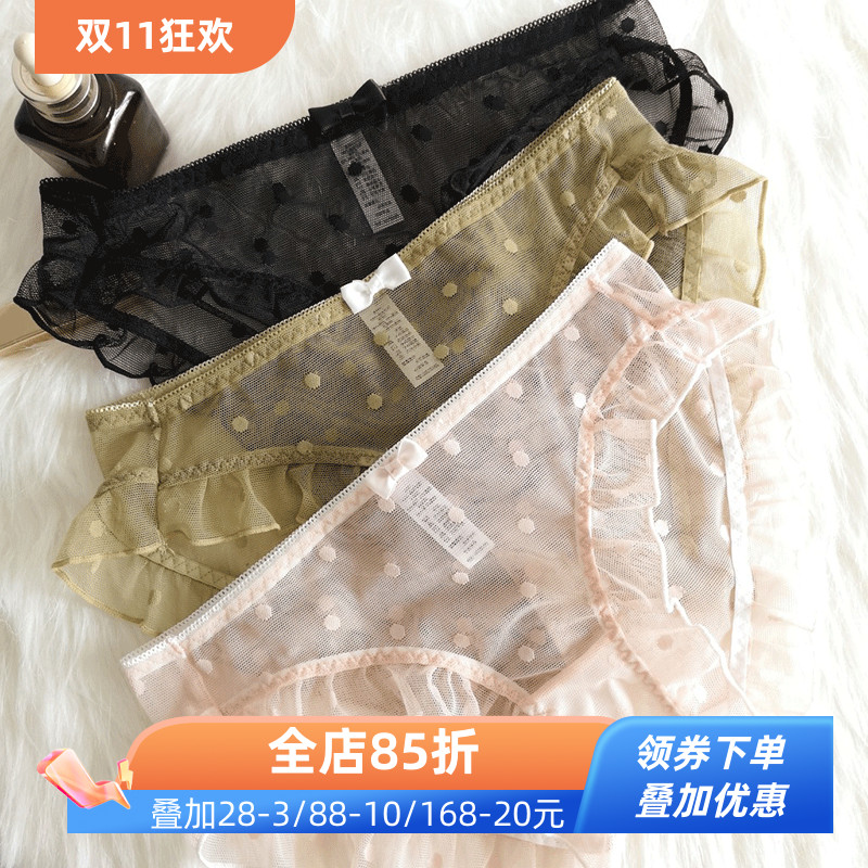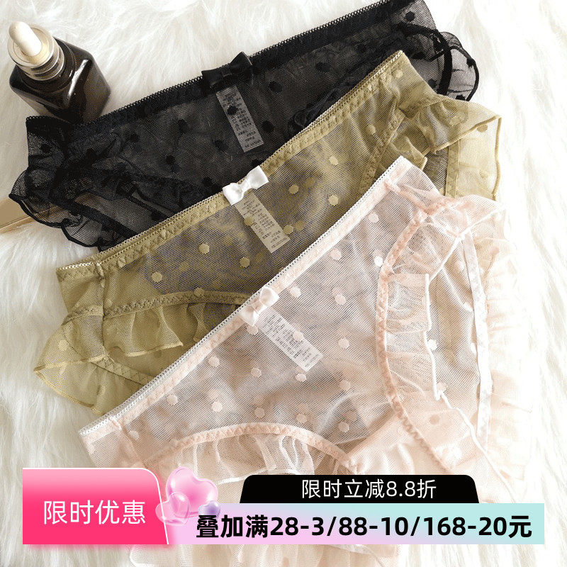 日系少女性感网纱透气内裤女可爱波点蕾丝荷叶边低腰女士三角裤头