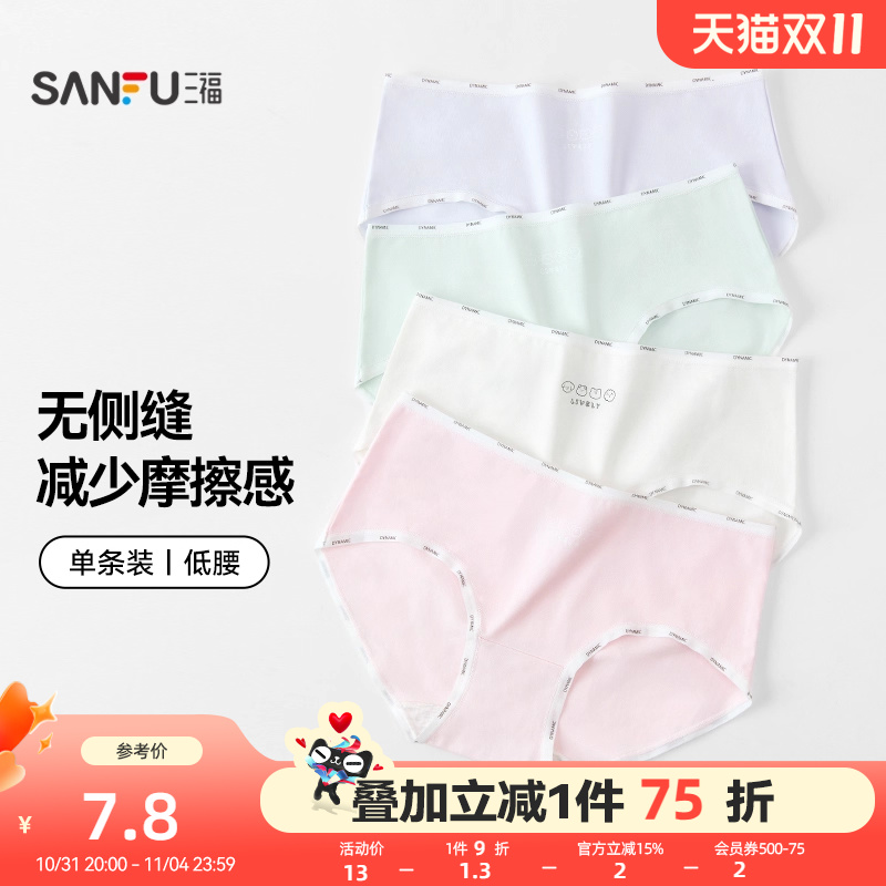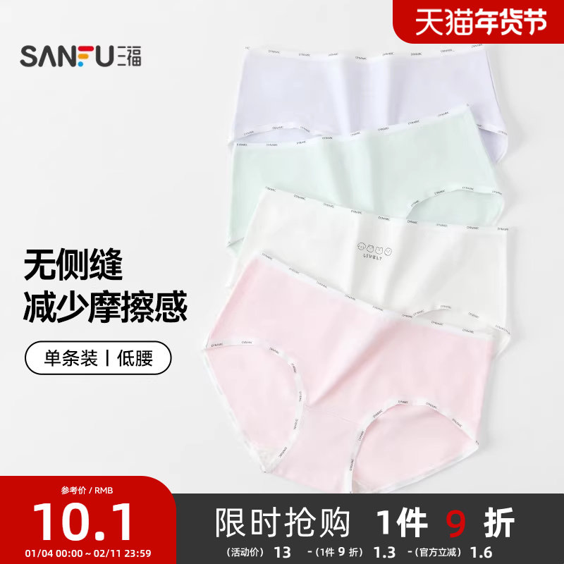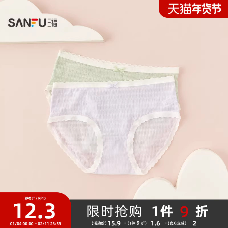 三福薄款低腰不夹臀包臀内裤女可爱透气纯棉裆半平角裤女465390