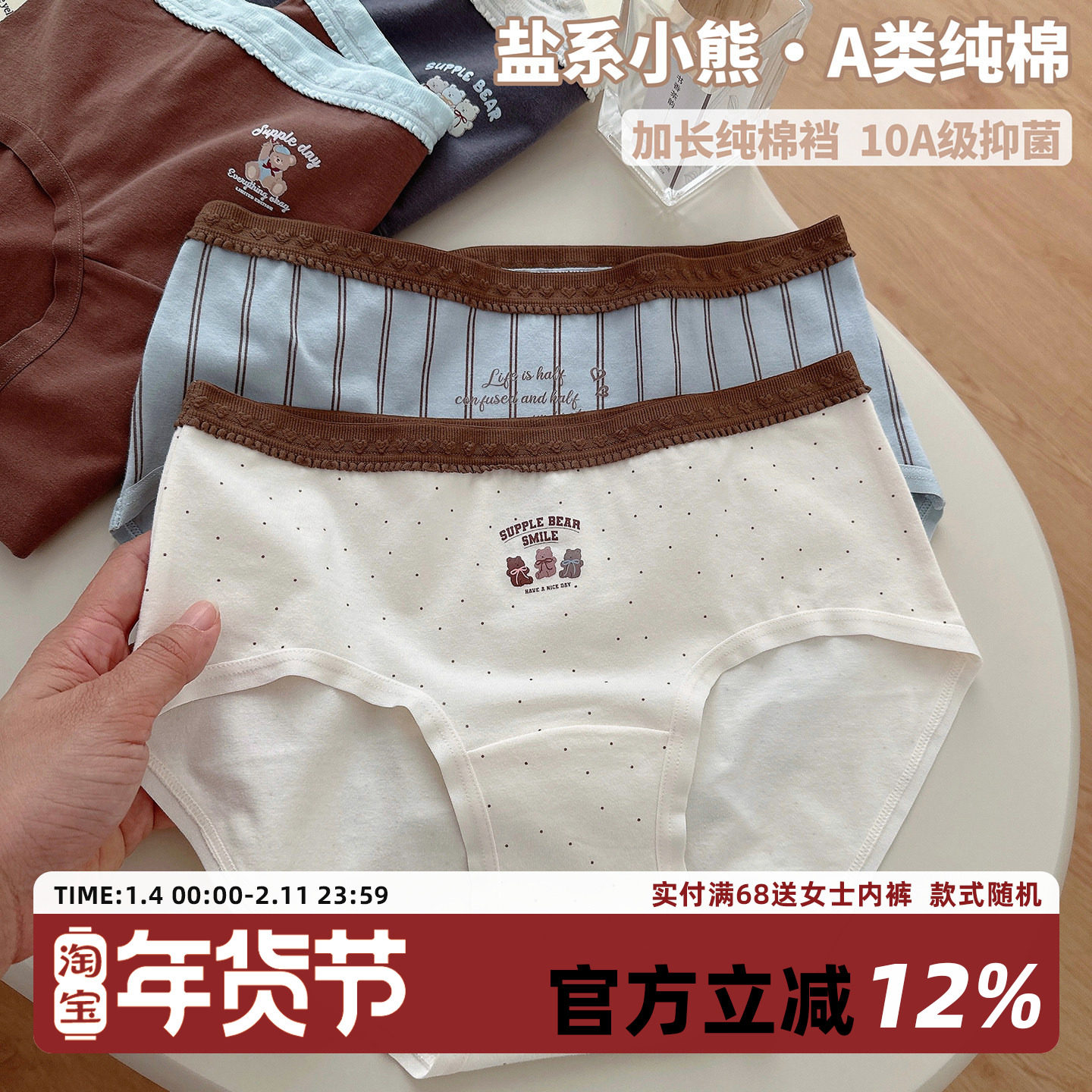 纯棉加长裆10A抗菌内裤女可爱小熊A类婴儿棉中腰包臀少女三角裤