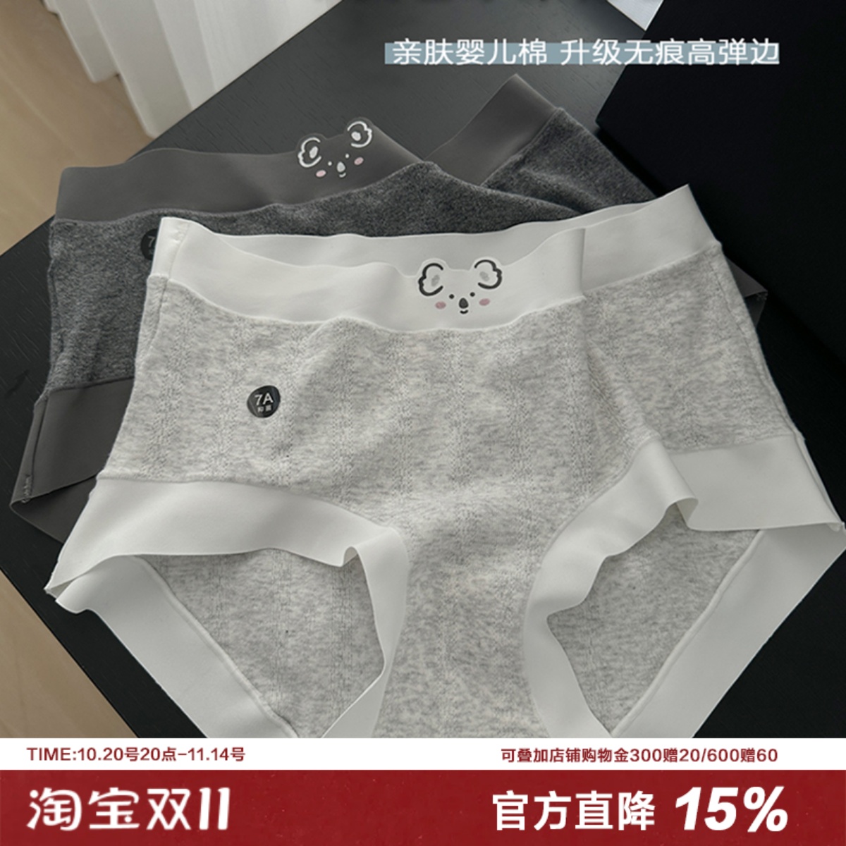 软糯婴儿棉考拉无痕边内裤女可爱卡通亲肤大弹力中腰包臀纯棉裆7A