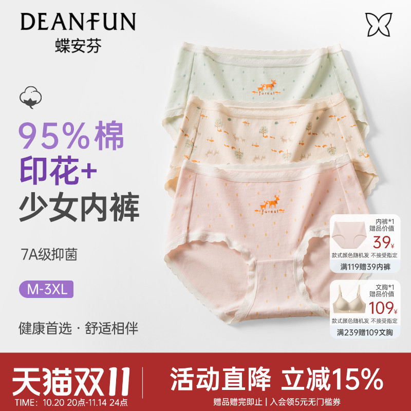 蝶安芬纯棉内裤女可爱印花三角裤纯棉抗菌裆甜美少女柔软短裤新款