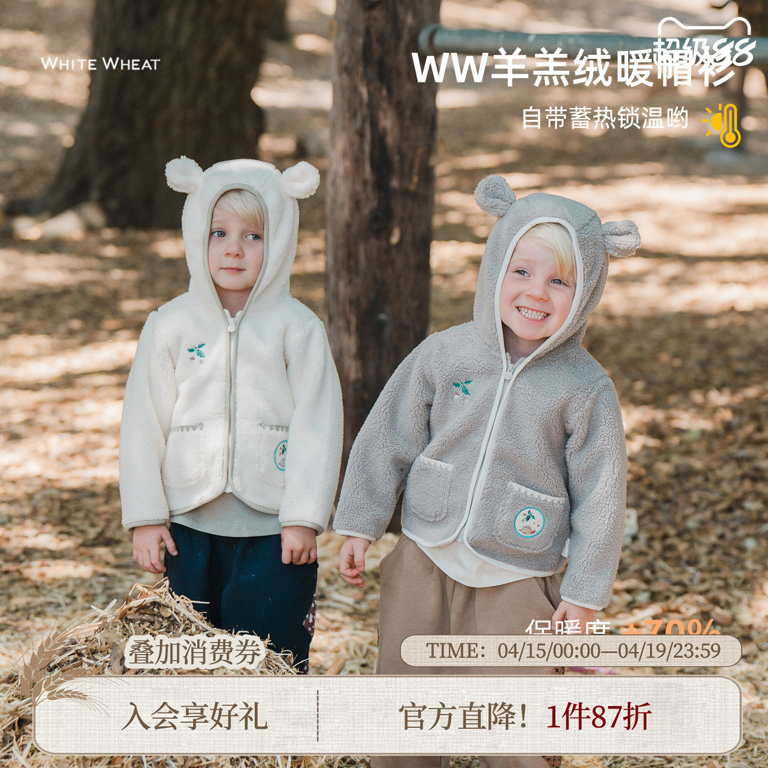 whitewheat男童2025冬季新款上衣宝宝衣服女孩冬装蓄热羊羔绒外套
