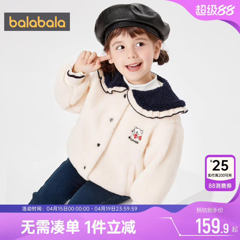 巴拉巴拉女童棉服仿羊羔绒棉衣外套儿童秋冬季新款童装宝宝加厚潮