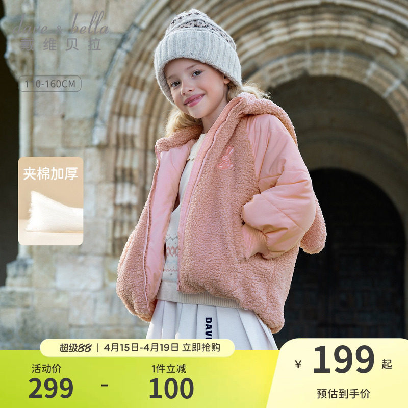戴维贝拉女童仿羊羔毛棉袄儿童毛绒棉服2026冬装新款女孩外套童装