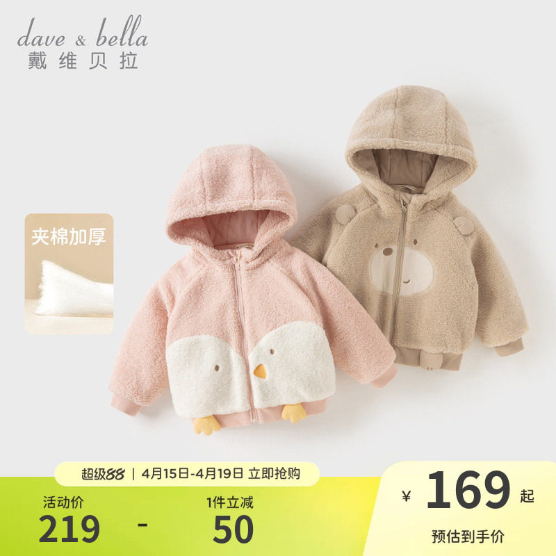戴维贝拉儿童毛绒棉服女童仿羊羔毛外套2026男童秋冬新款A类棉衣