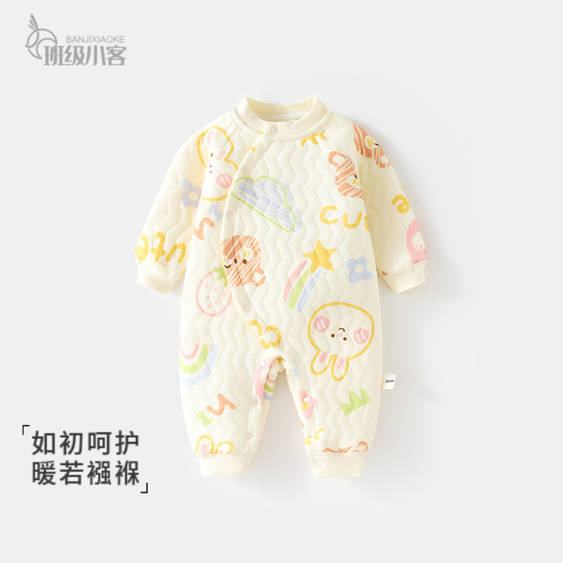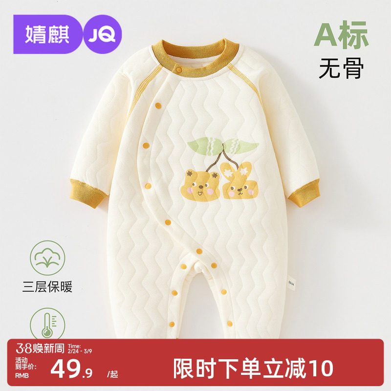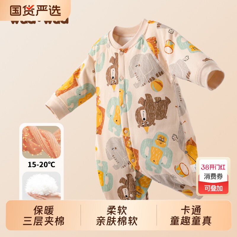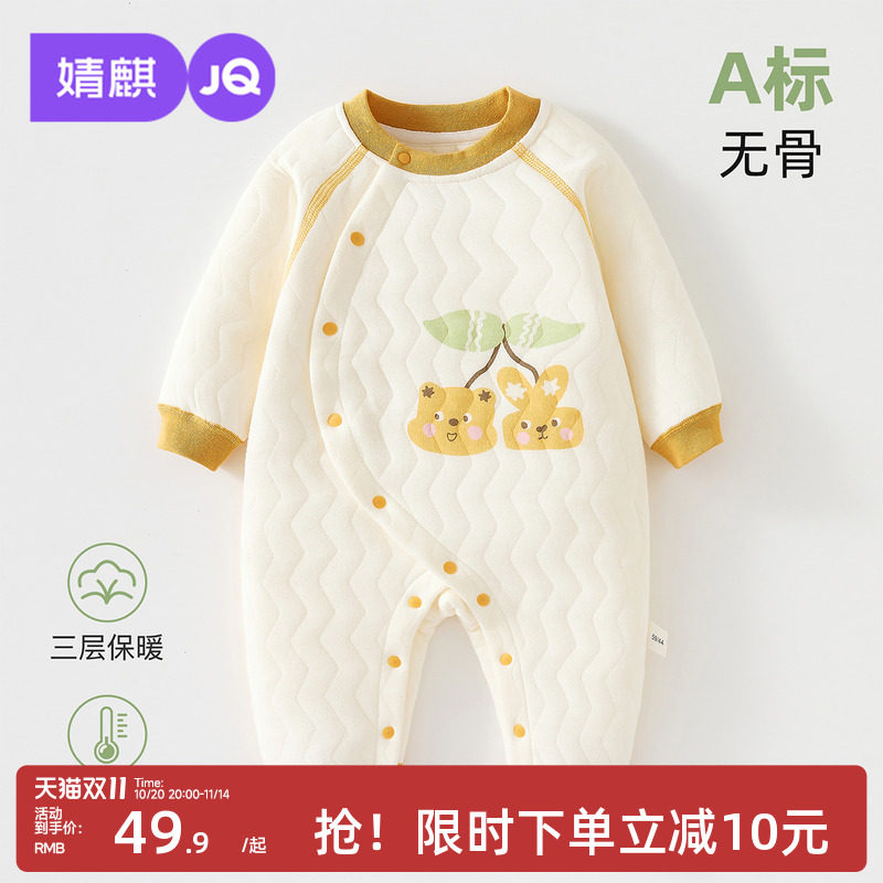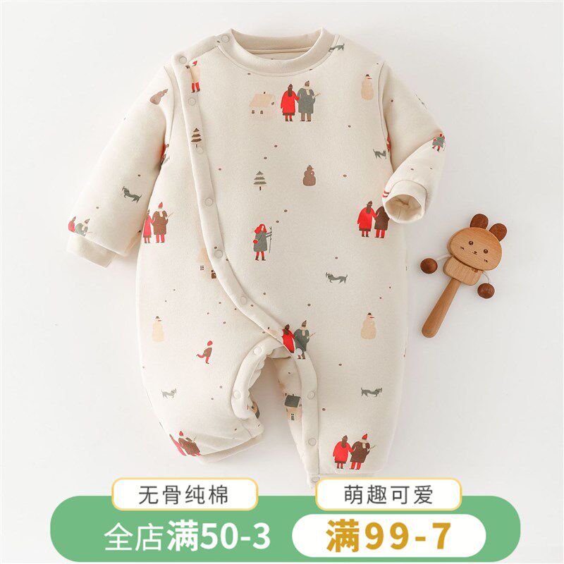 婴儿连体衣保暖秋冬纯棉a类宝宝内衣夹棉爬服睡衣新生儿衣服春秋