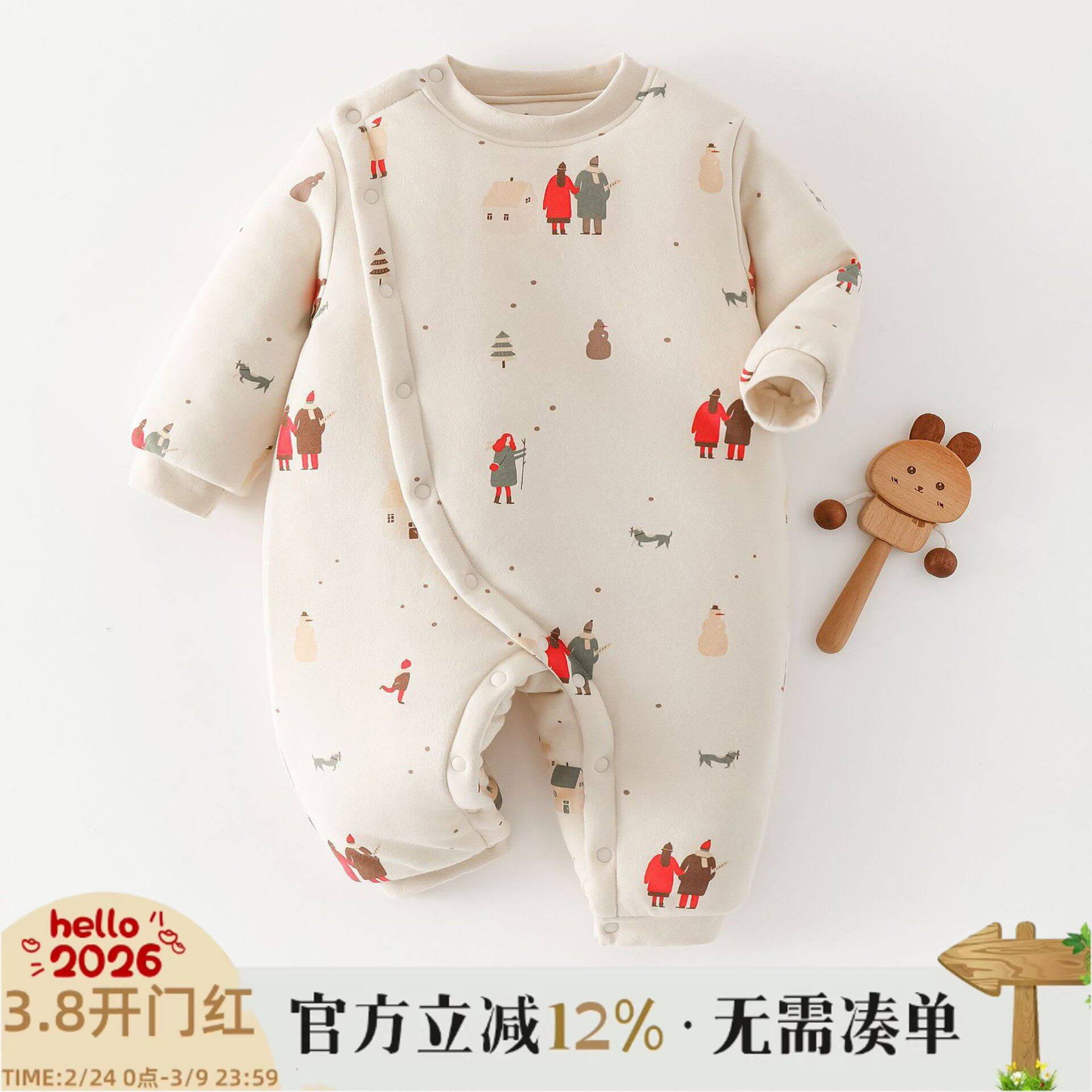 婧麒婴儿连体衣保暖秋冬装夹棉新生儿衣服宝宝加厚外出哈衣爬爬服