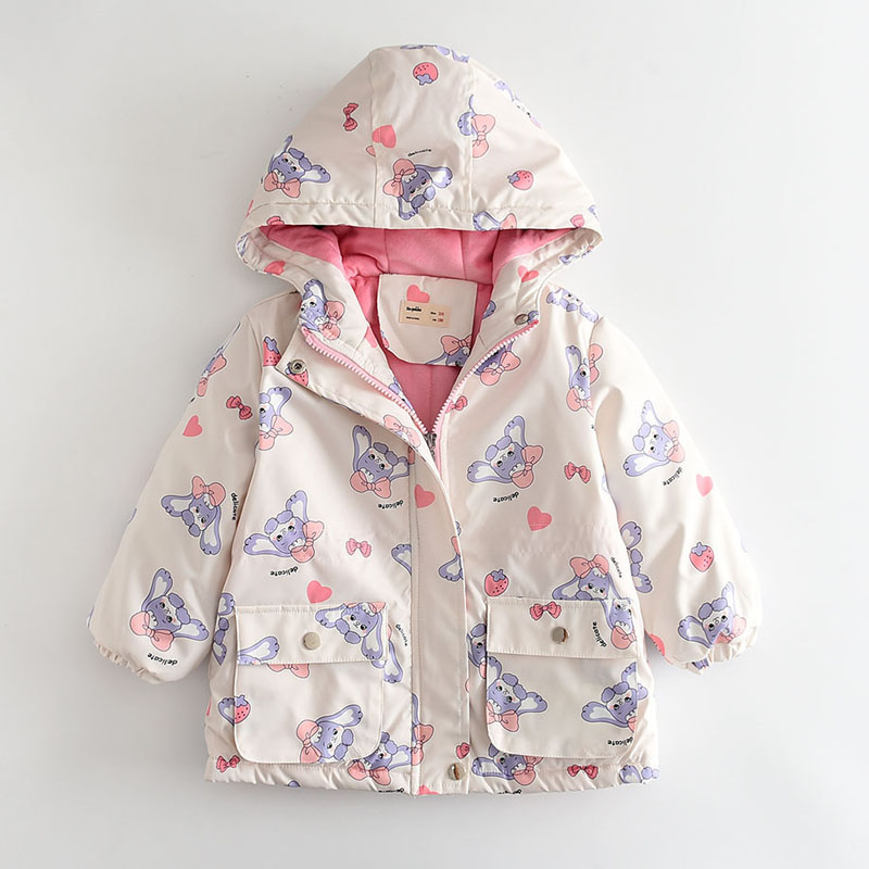 女童卡通粉色带帽冲锋衣宝宝棉衣外套中小童加绒棉袄女孩拉链衫潮