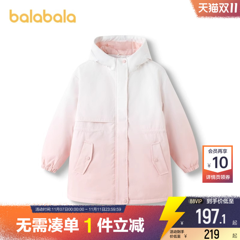 巴拉巴拉女童棉服中大童宝宝棉衣外套秋冬季新款童装儿童连帽棉袄