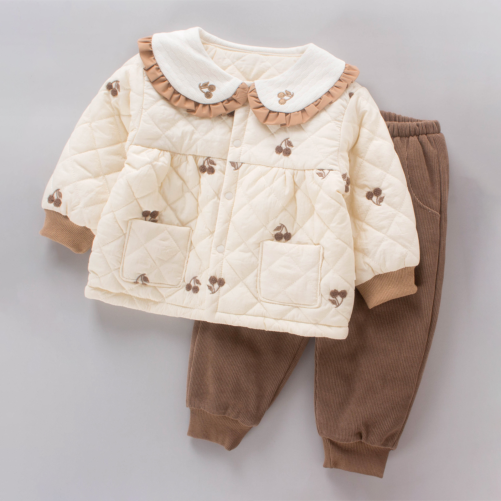 秋冬季女宝宝棉衣外套套装加棉婴儿夹棉外出服中厚款分体棉袄棉裤
