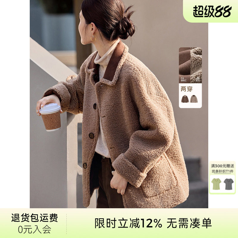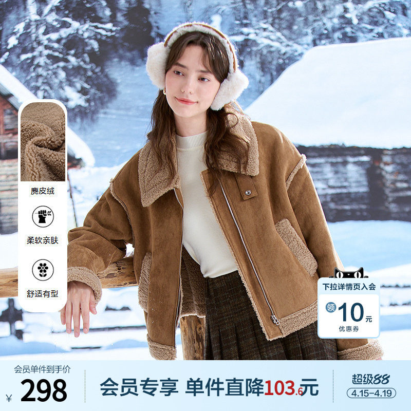 ON&ON/安乃安2025冬季新款韩系复古羊羔毛皮毛一体麂皮绒短外套