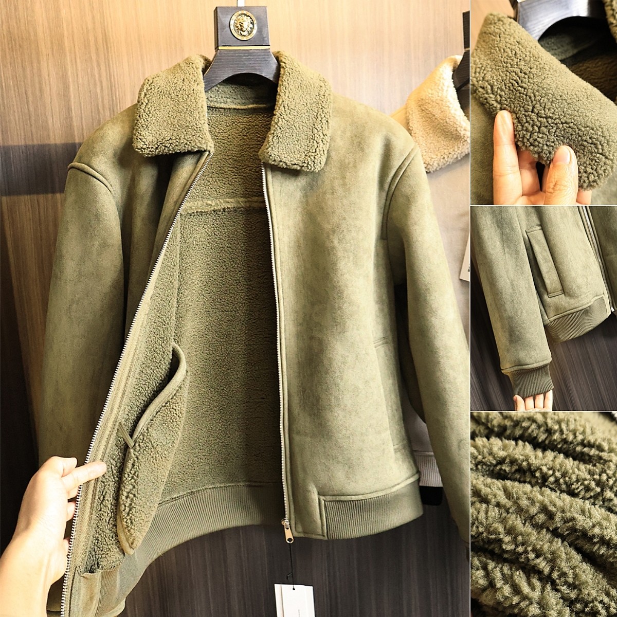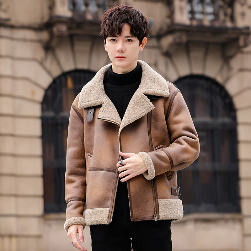皮毛一体外套潮流加厚羊羔高级外贸夹克秋冬男士麂皮绒男保暖冬装