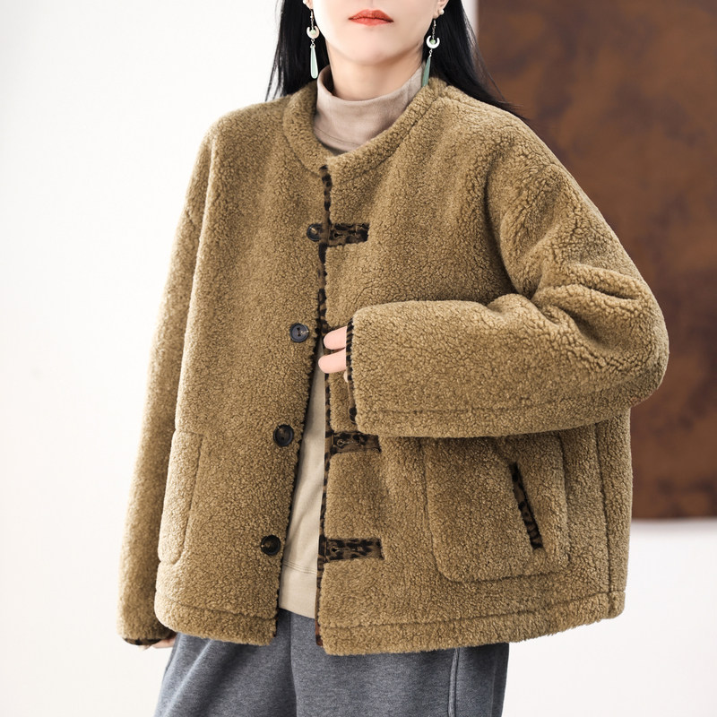 CHICVEN 2025秋冬麂皮绒羊羔毛正反两穿外套美拉德机车服大码女装