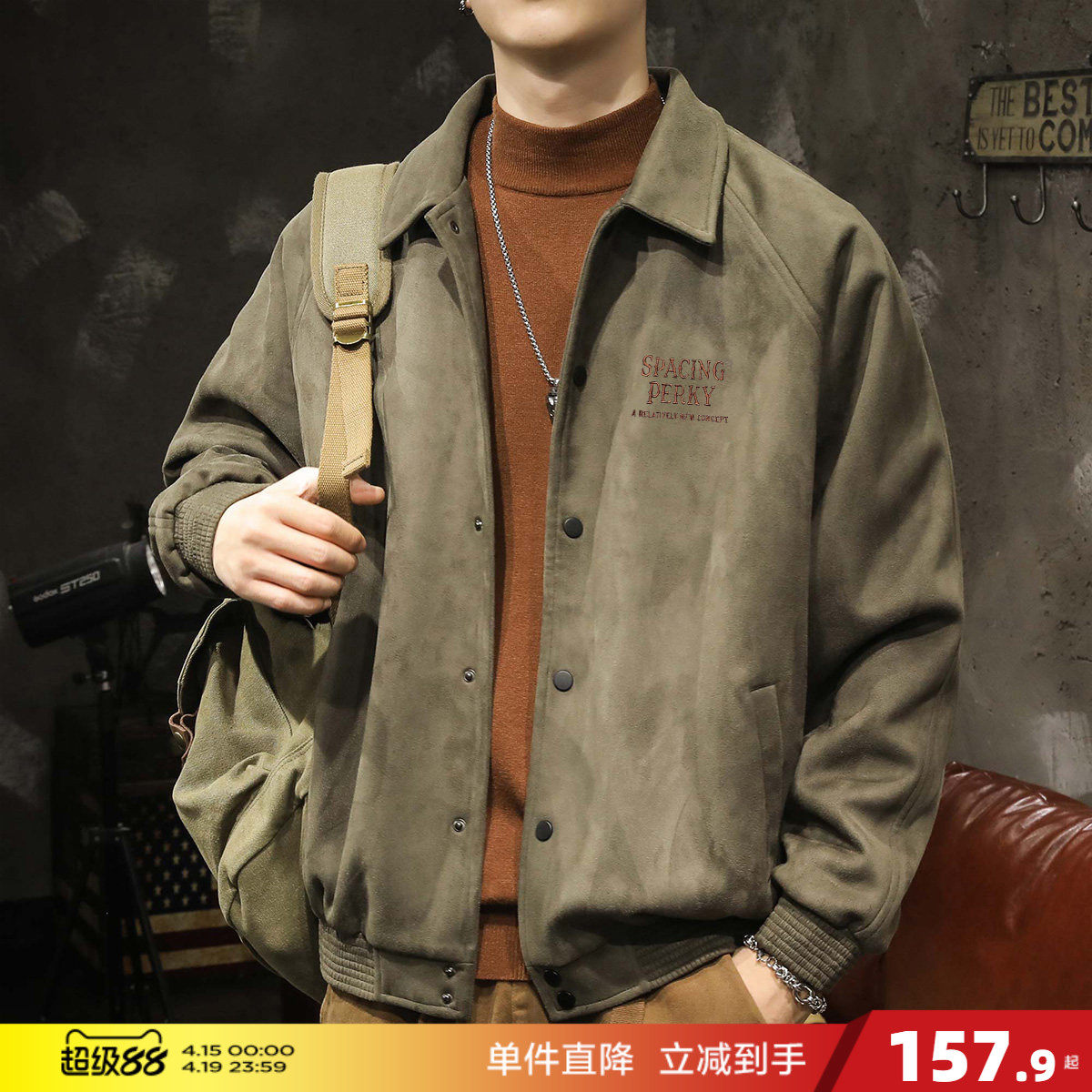 714street秋冬美式复古麂皮绒翻领夹克男2024新款羊羔绒工装外套