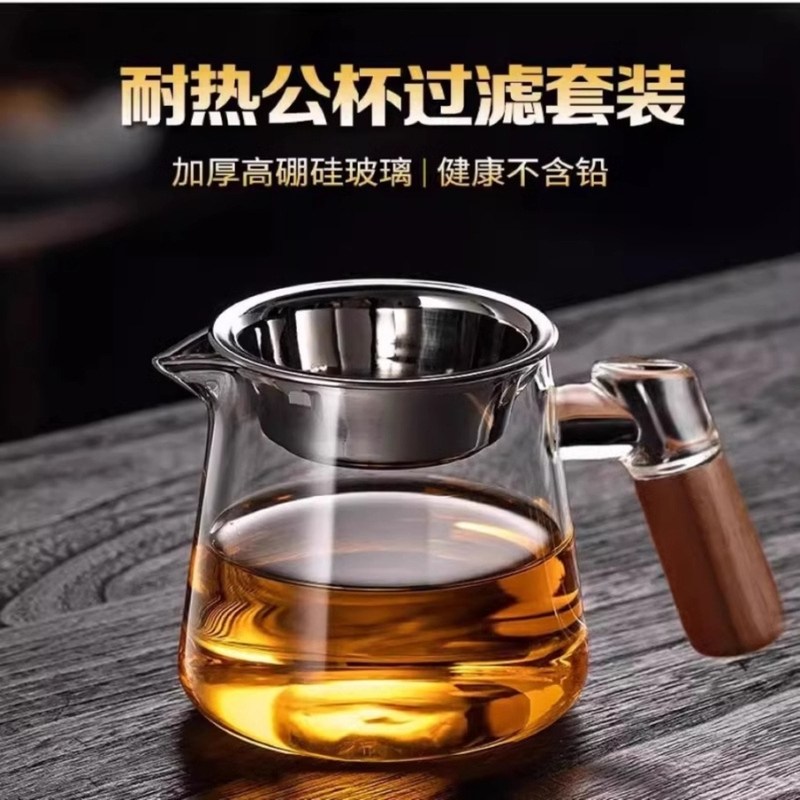 新款木把玻璃公道杯耐热加厚茶叶过滤分茶器茶漏家用高档玻璃茶具