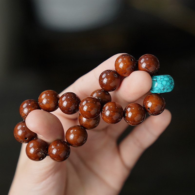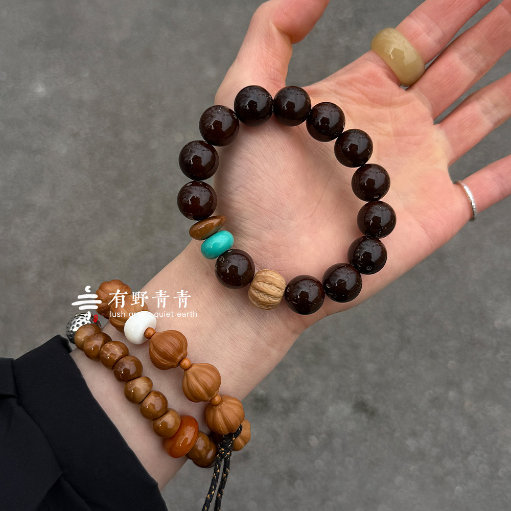 有野青青「黑巧坨坨」原创设计紫金鼠圆珠阿拉善黑巧牛骨文玩手串
