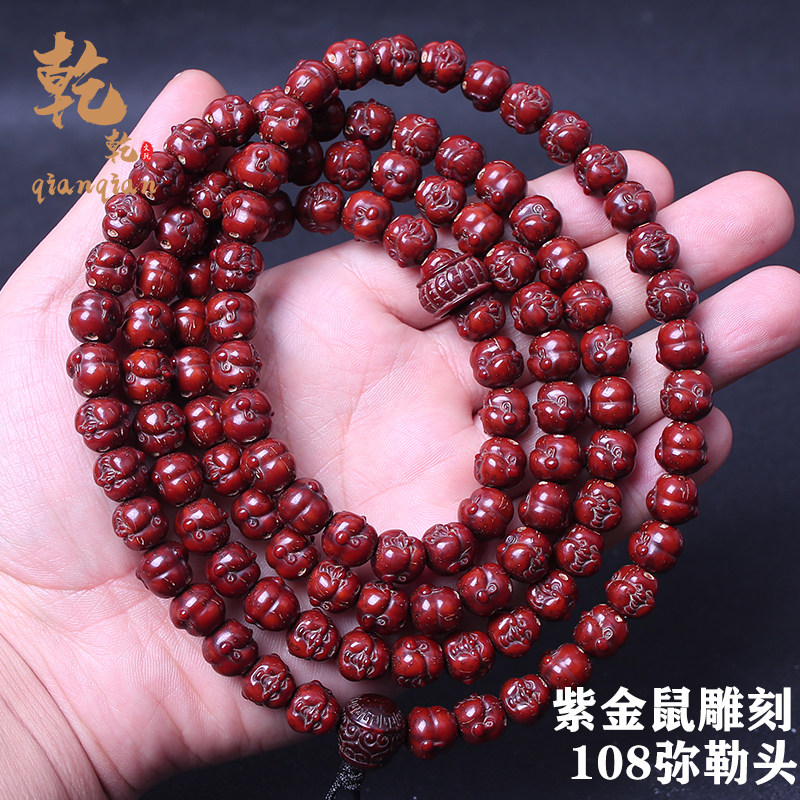紫金鼠菩提雕刻小弥勒脖挂念珠长串男女手持多圈手串紫金鼠108颗