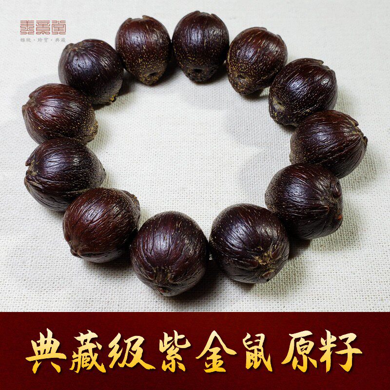 紫金鼠手串男女文玩配饰生肖流苏原籽实心籽盘玩念珠正品佛珠手持