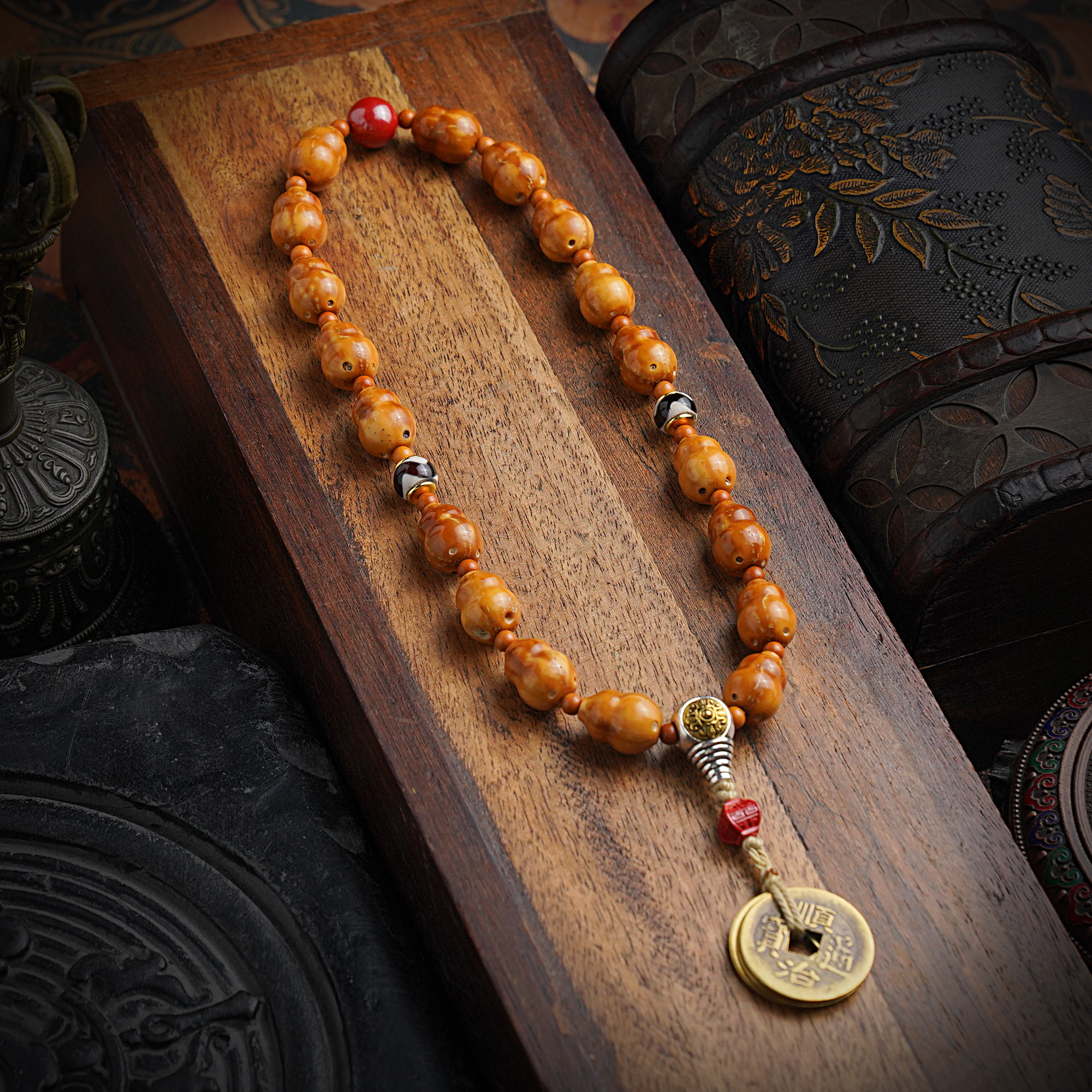 天然印尼紫金鼠手串黄皮雕刻葫芦18籽菩提子文玩佛珠念珠手持男女