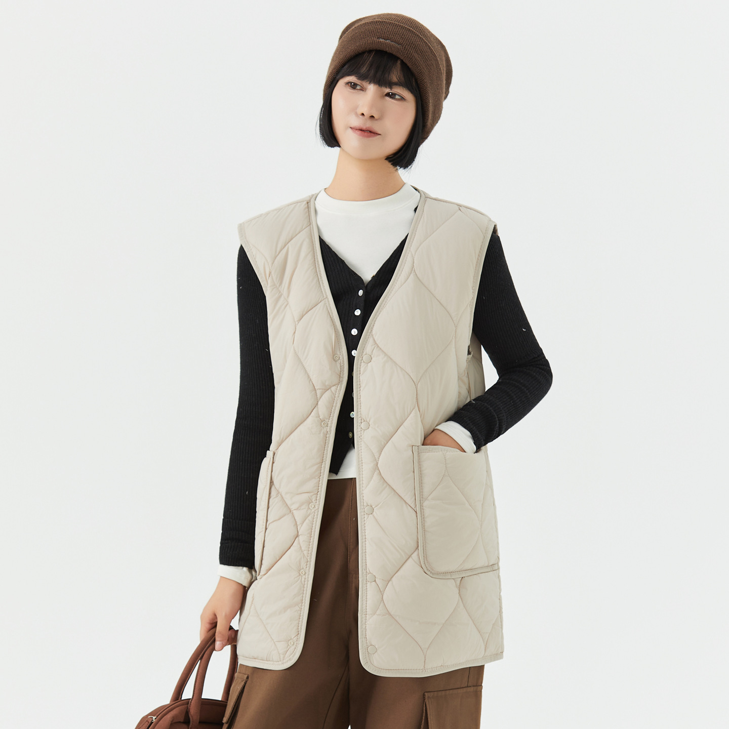秋冬季新款中老年羽绒棉中长款马甲女韩版轻薄修身学生百搭外套潮